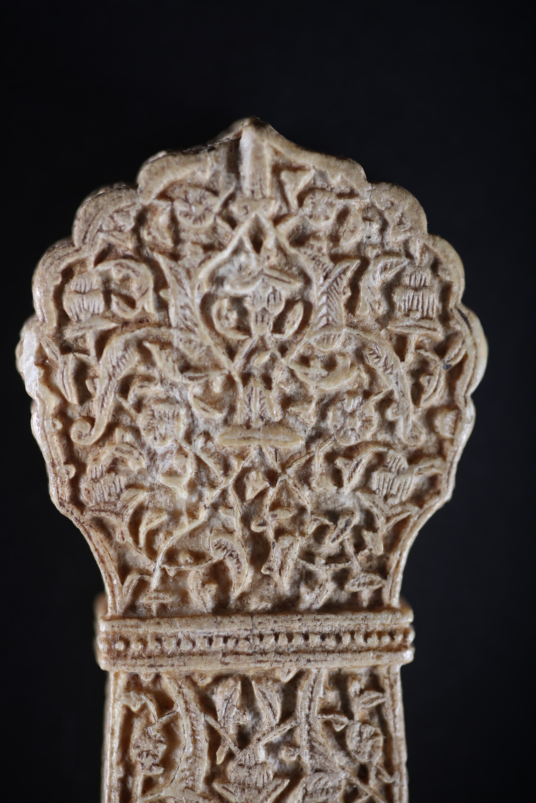 Arte Islamica Rara elsa di pugnale in avorio finemente intagliata con arabeschi