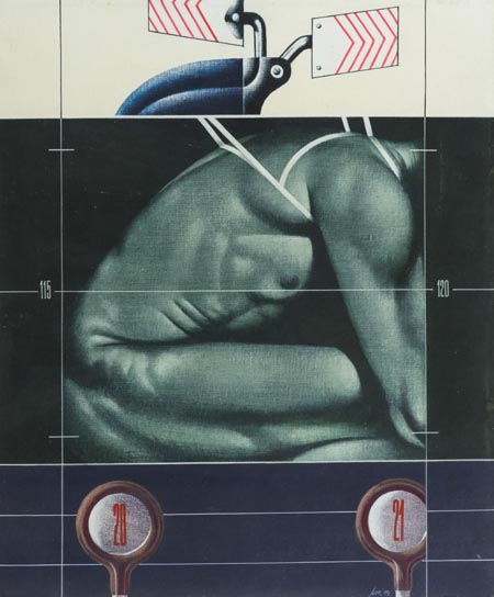 Sergio Sarri Torino 1938 Studio per analisi, 1972, Acrilici su tela, cm. 60x50 Firma e data in basso a destra; Sul verso: firma, data e titolo.
