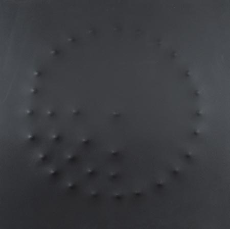 Angelo Brescianini Brescia 1948 33 spari, pistola calibro 45 , 2013, Spari su lastra di alluminio dipinta, cm. 100x100 Sul verso: firma, data e titolo. Autentica dell'Artista su foto.
