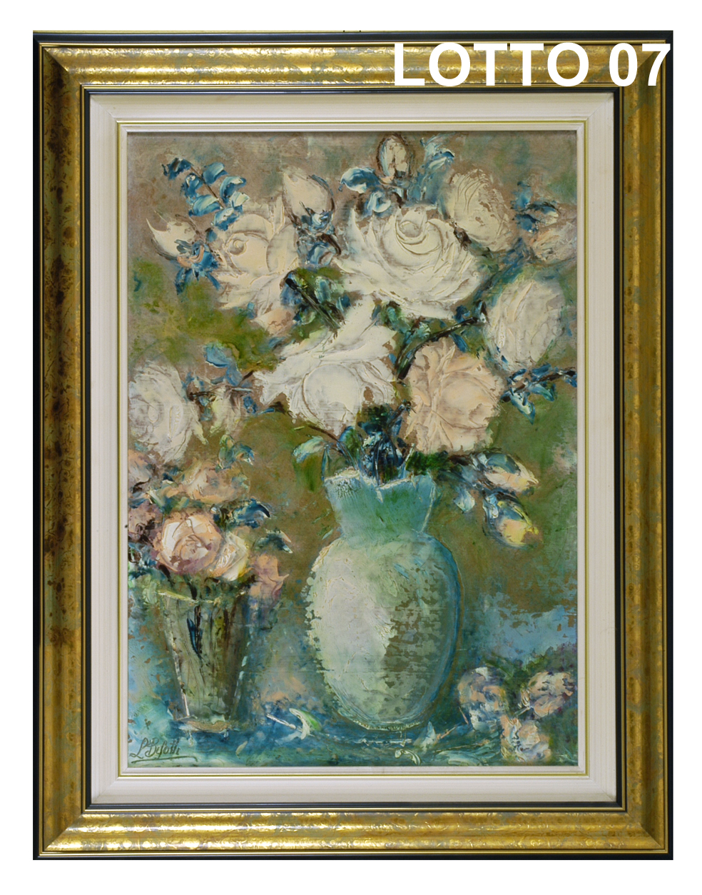 LUIGI BISOTTI (1916) DIPINTO OLIO SU TAVOLA RAFF. ROSE CON VASO MIS. 50 X 70