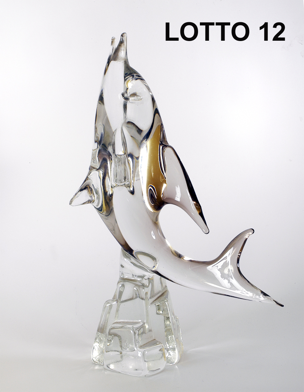 LICIO ZANETTI SCULTURA IN VETRO RAFF. DELFINO H. 36