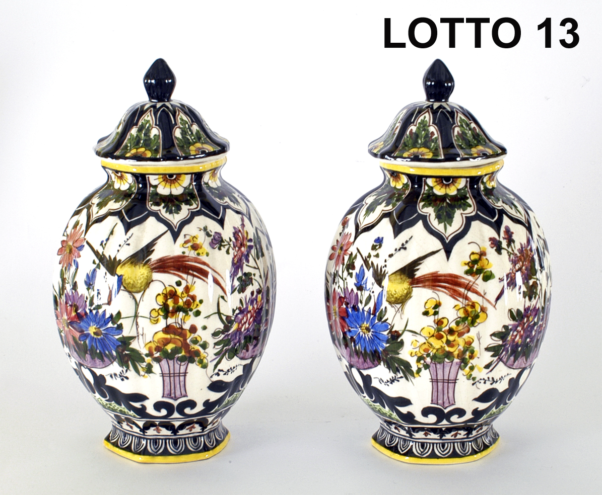 TOSIN LOTTO COMPOSTO DA 02 VASETTI IN CERAMICA DIPINTA ANNI 20 H. 25