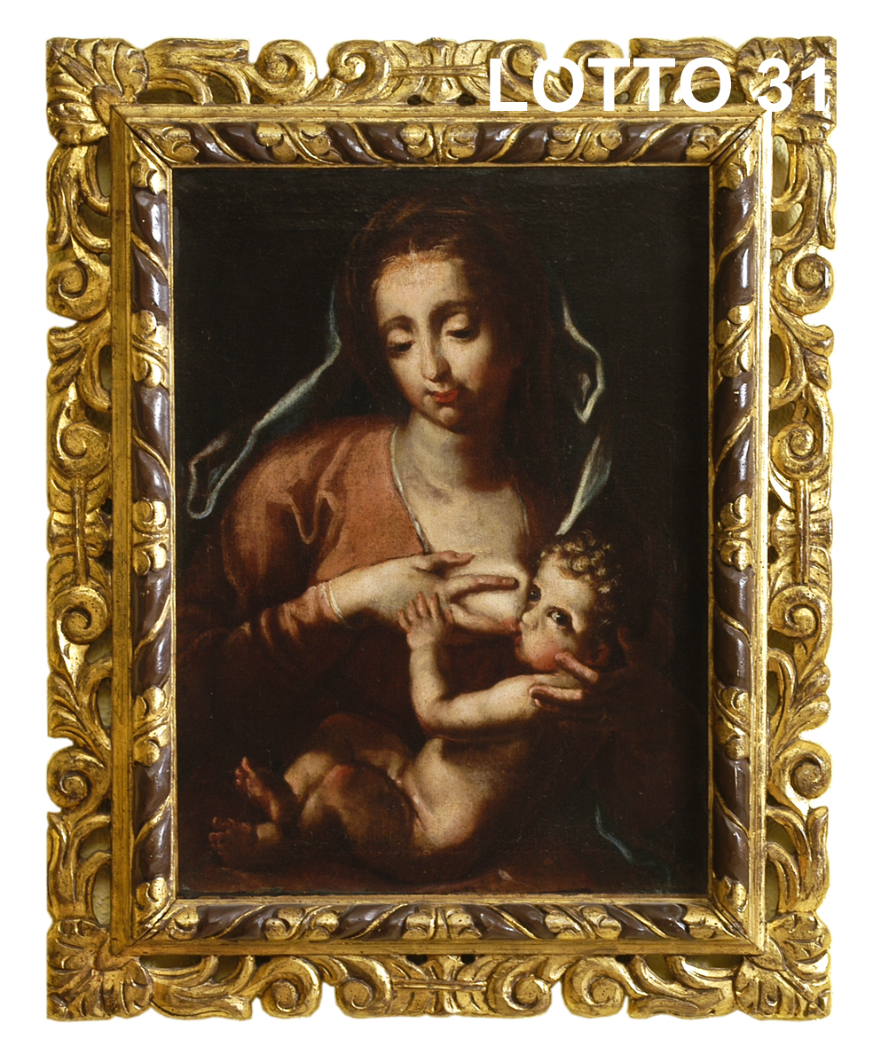 ANONIMO DEL XVII° SEC. DIPINTO OLIO SU TELA RAFF. MADONNA CON BIMBO MIS. 65 X 50