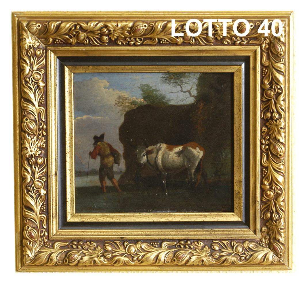 Lot 40 | ANONIMO FIAMMINGO DEL XVII° SEC. DIPINTO OLIO SU TAVOLA RAFF. SCENA AGRESTE...