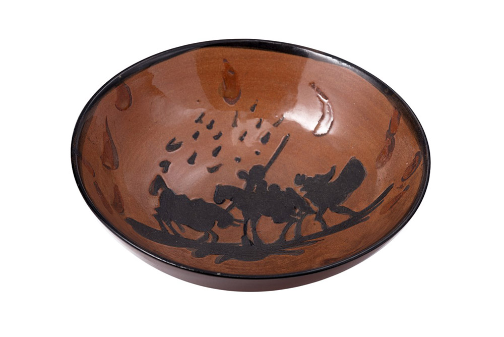 Pablo Picasso (Malaga 1881 - Mougins 1973) "Picador" ciotola in ceramica parzialmente smaltata, diam. cm 16,5 Edition Picasso. Numerata es. 138/500 Pablo Picasso (Malaga 1881 - Mougins 1973) "Picador" partially glazed ceramic bowl, diam. cm 16,5 Edition Picasso. Numbered 138/500