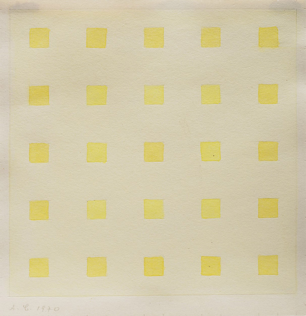 Antonio Calderara (Abbiategrasso 1903 - Vaciago 1978) "Senza titolo" 1970 acquerello su carta, cm 14,2x14,8 Siglato e datato 1970 in basso a sinistra. Firmato e datato 1970 al retro Opera accompagnata da certificato di autenticità su fotografia rilasciato dall'Archivio Antonio Calderara, Milano, con il n.0099, in data 22/04/2016 Antonio Calderara (Abbiategrasso 1903 - Vaciago 1978) "Untitled" 1970 watercolour on canvas, cm 14,2x14,8 Signed with the initials and dated 1970 lower left. Signed and dated 1970 on verso Certificate of authenticity on photography by the Archivio Antonio Calderara, Milan, with nr.0099 dated 22/04/2016