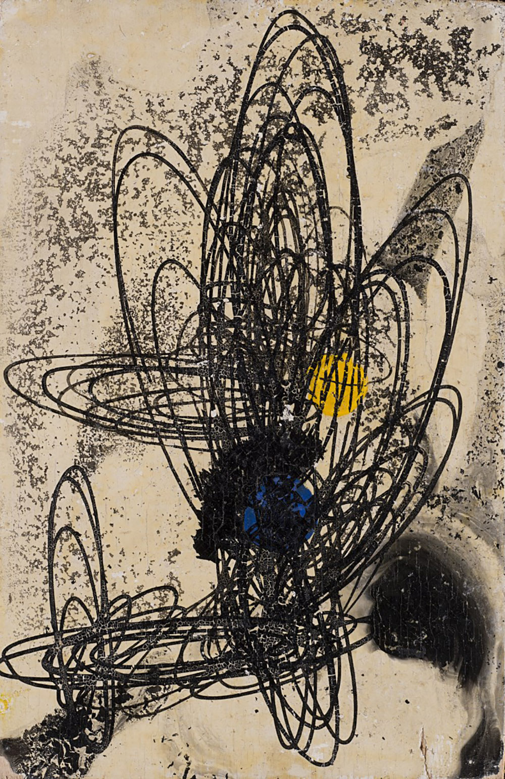 Roberto Crippa (Monza 1921 - Bresso 1972) "Spirali" 1952 olio su tavola, cm 15x10 Firmato e datato 1952 al retro Provenienza Collezione Ambasciatore Onofrio Solari Bozzi, Roma Opera accompagnata da certificato di autenticità su fotografia rilasciato dall'Archivio delle Opere di Roberto Crippa a cura della Galleria Pace, Milano, con il n. 1106 Roberto Crippa (Monza 1921 - Bresso 1972) "Spirali" 1952 oil on board, cm 15x10 Signed and dated 1952 on verso Provenance Ambassador Onofrio Solari Bozzi collection, Rome Certificate of authenticity on photography by Archivio delle Opere di Roberto Crippa, Galleria Pace, Milan, n.1106