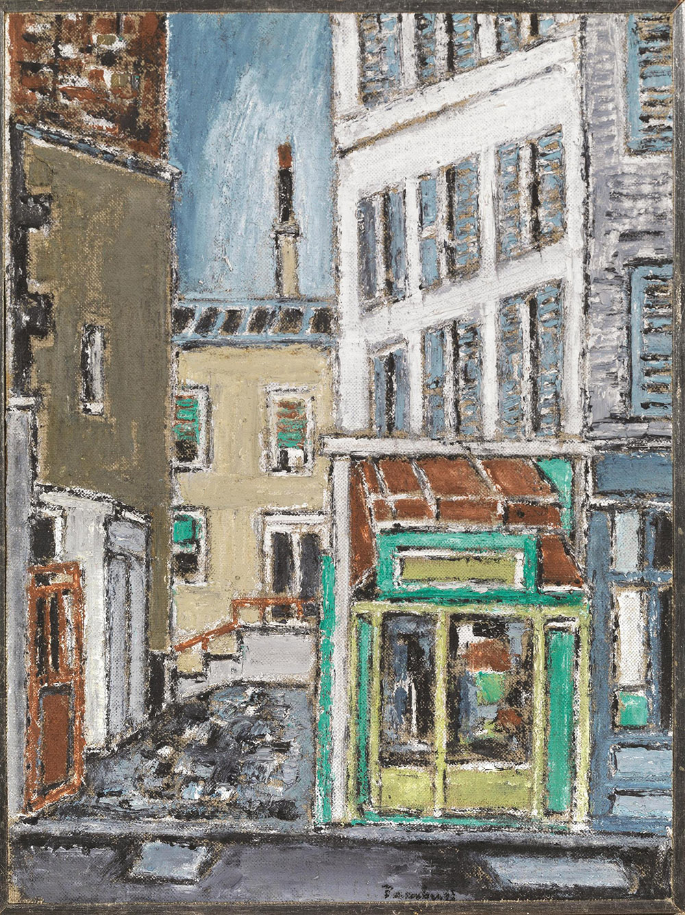 ORFEO TAMBURI(Jesi 1910 - Parigi 1994)Il cortilettoolio su tela applicata su...