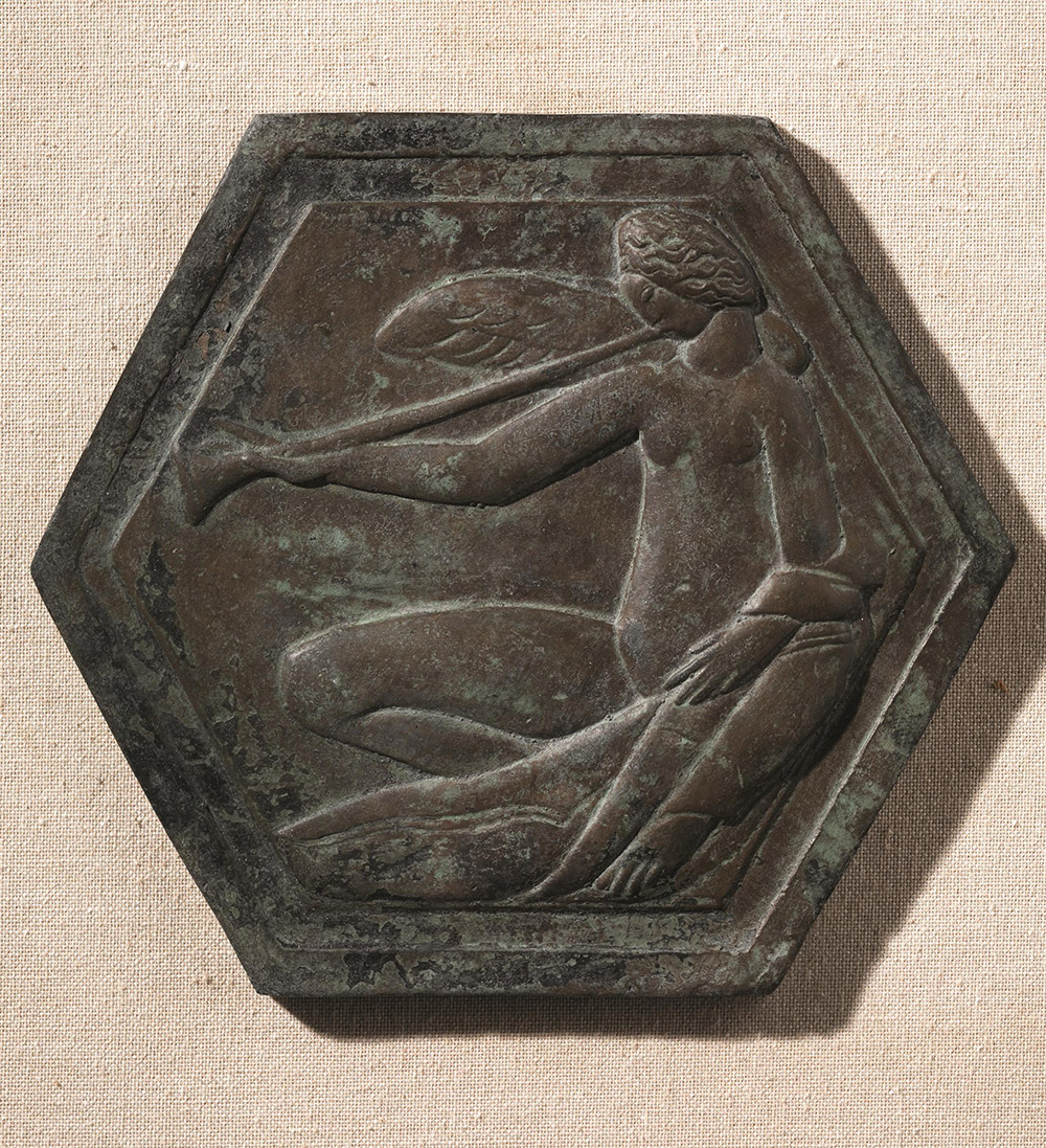 bassorilievo in bronzo, cm 18,5x20,5x1; es. 1/4