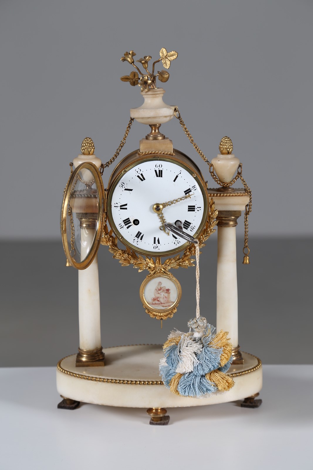 MANIFATTURA FRANCESE DEL XIX SECOLO Elegante orologio da tavolo, in marmo con...