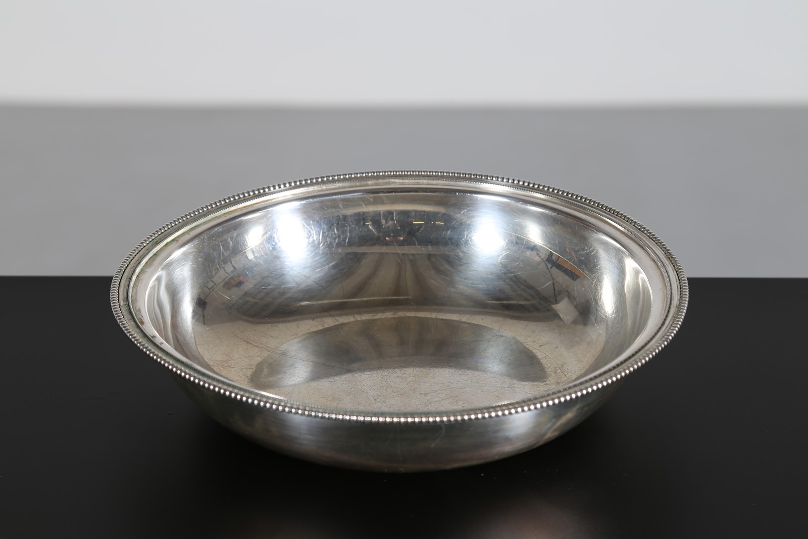 MANIFATTURA ITALIANA DEGLI INIZI DEL XX SECOLO Bacinella. Argento. Cm 28,00 x 7,00. Sul bordo inferiore incisione R. Miracoli Milano. Peso 0,76 Kg.