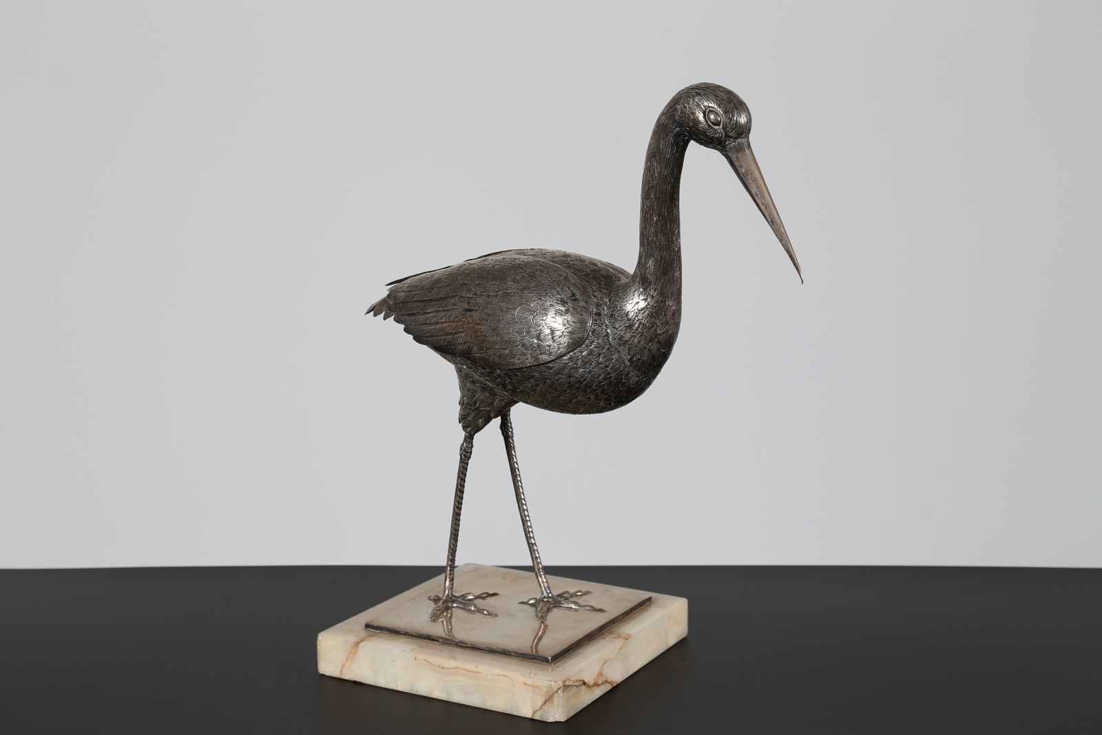 MANIFATTURA ITALIANA DEGLI INIZI DEL XX SECOLO Cicogna. Argento. Cm 41,00 x...