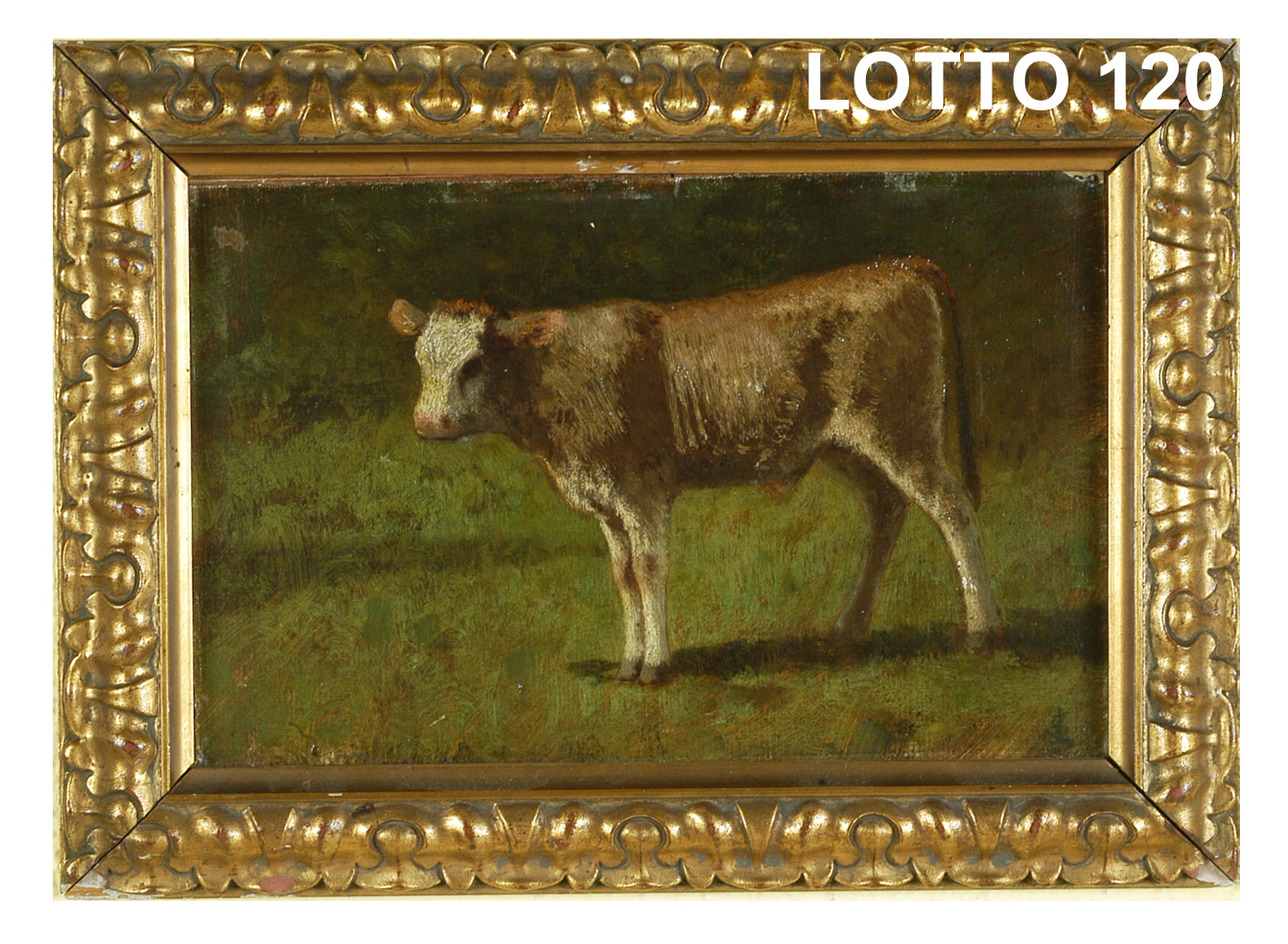 Lot 120 | LUIGI STEFFANI (1827 – 1898) DIPINTO OLIO SU TELA RAFF. MUCCA MIS. 28 X 19