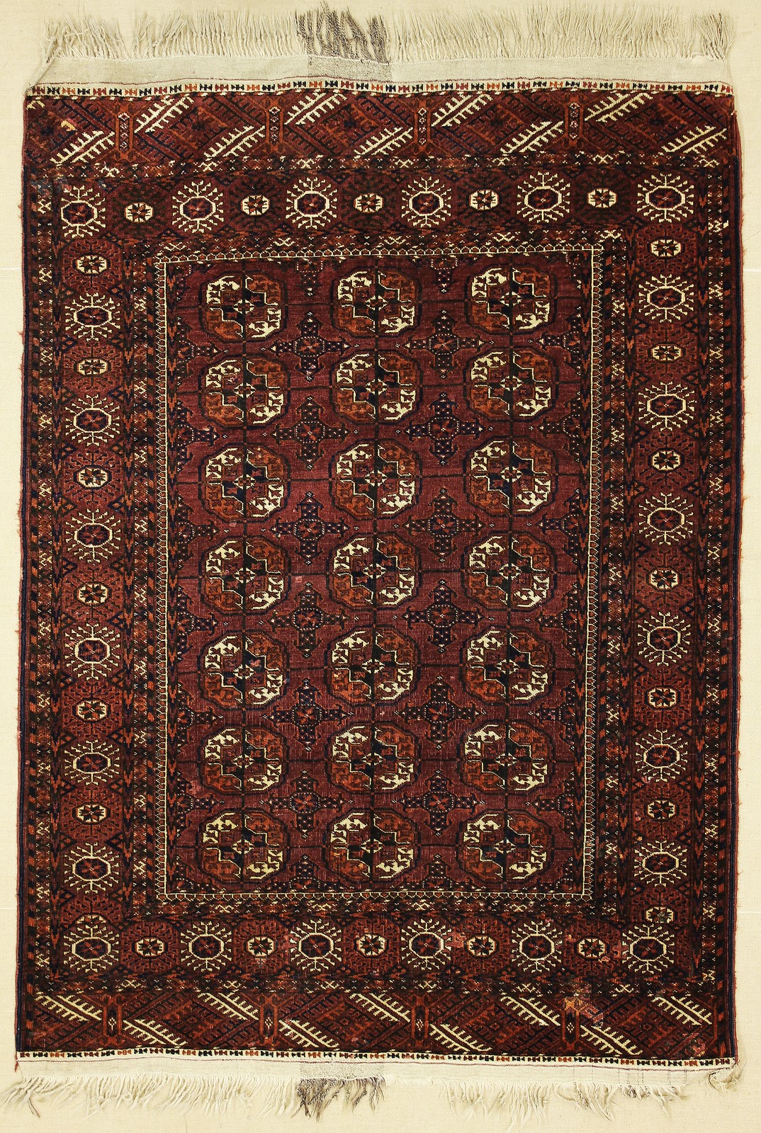 Lot 146 | TEKE BUKARA Turkestan Occidentale. 1950 circa. Fondo prugna, 7x3 guls. Alcuni...