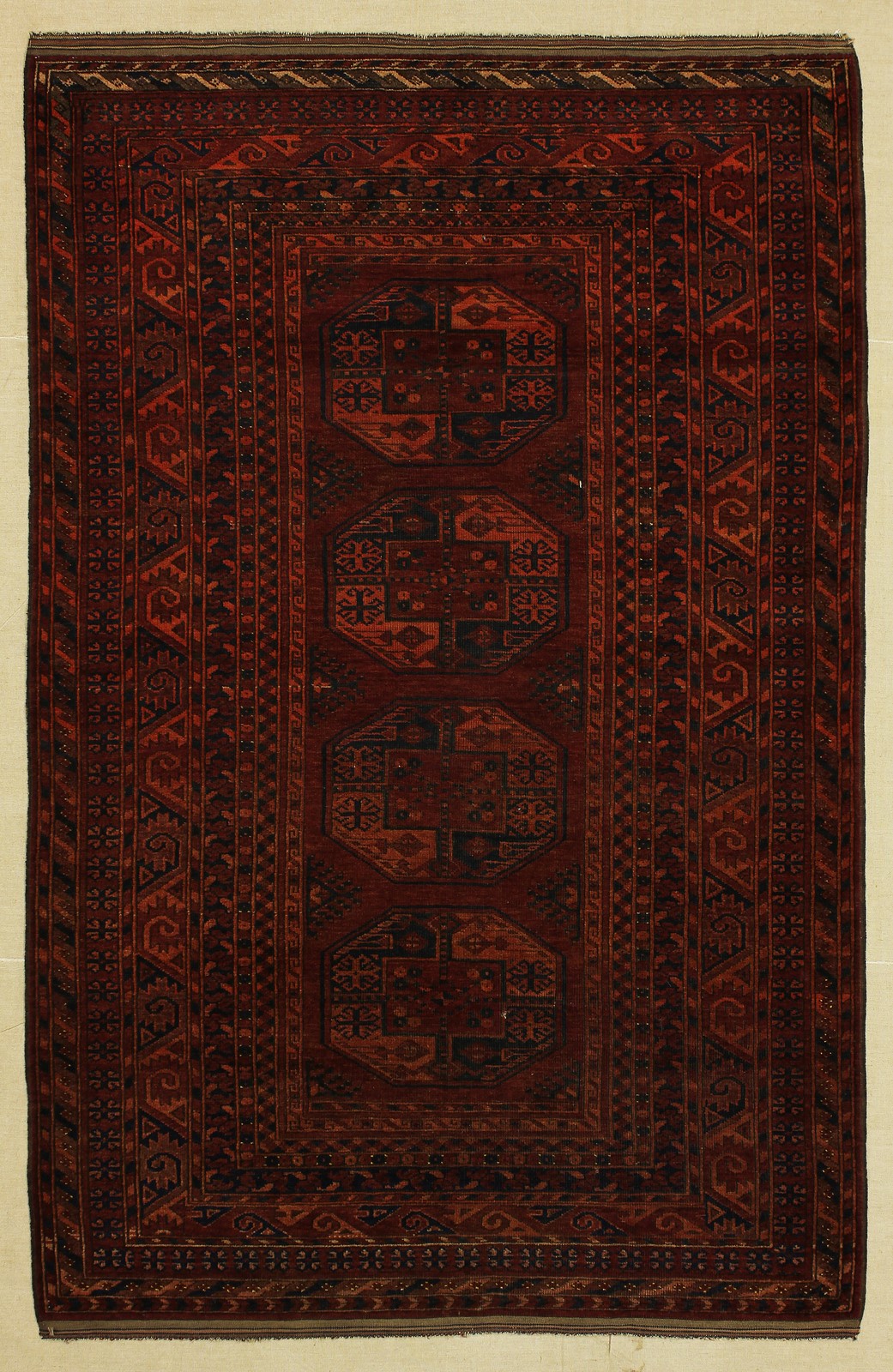 ERSARY Afghanistan. 1930 circa. Fondo sangue cotto, 4 guls, molti bordi. Conservazione ottima. Tappeto. Cm 130,00 x 203,00.