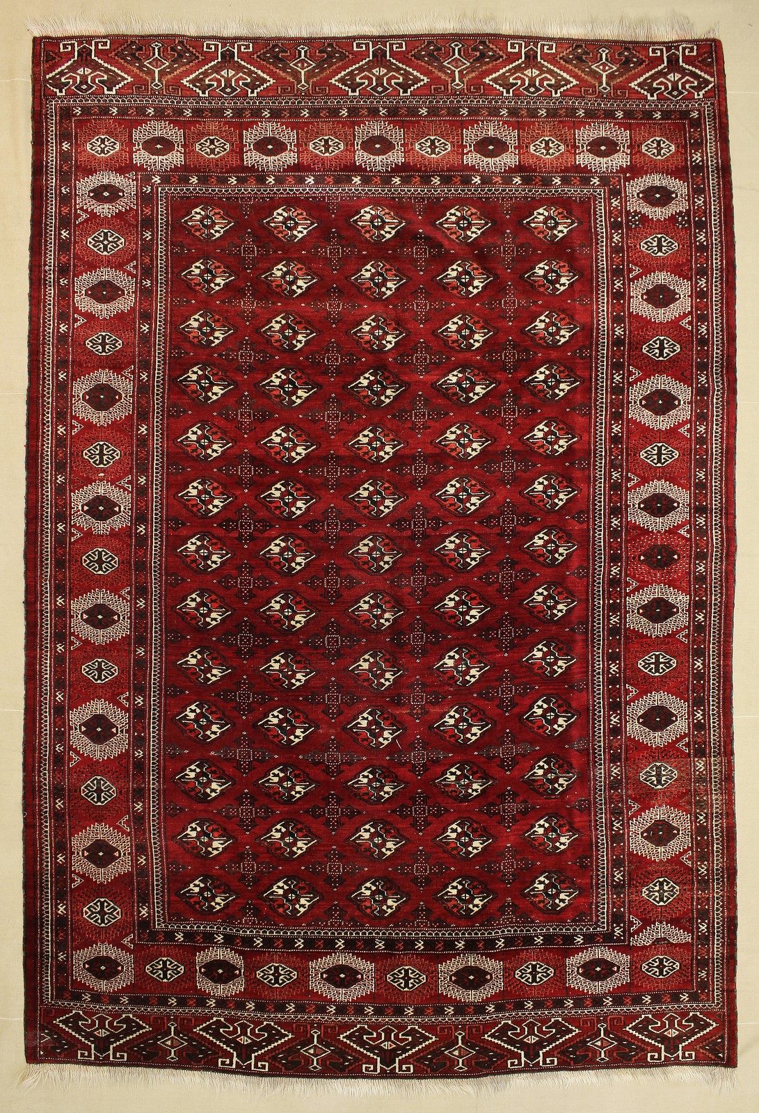 BUKARA Persia. 1950 circa. Rosso mattone, 50 guls. Stato di conservazione perfetto. Tappeto. Cm 220,00 x 324,00.