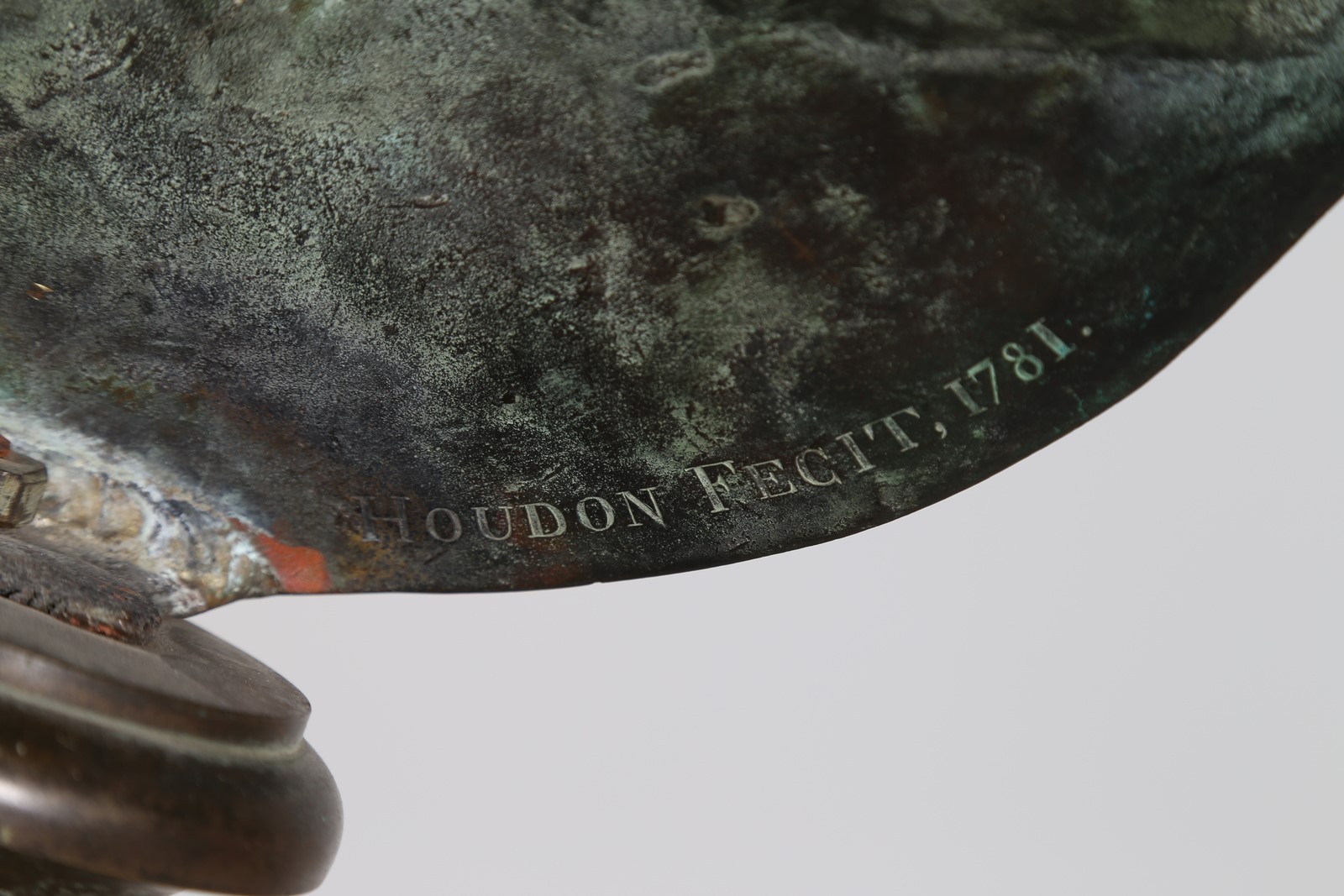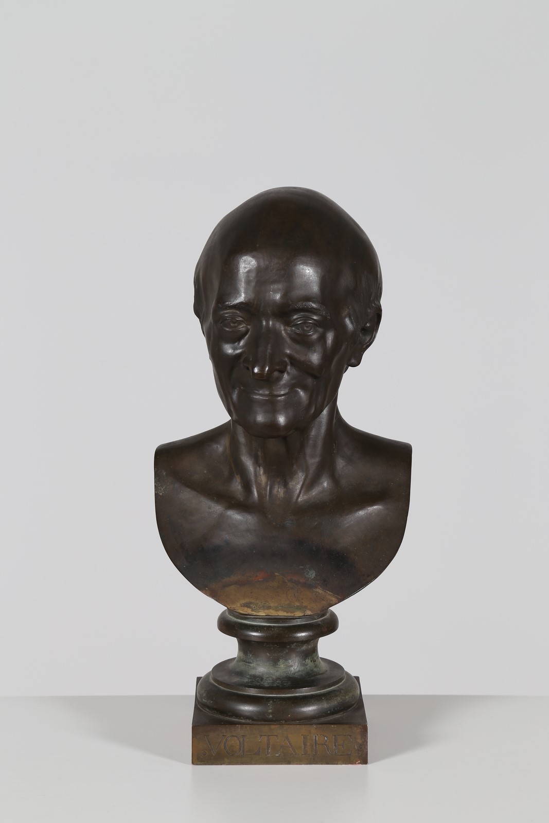 HOUDON JEAN ANTOINE (1741 - 1828) Voltaire. 1781. Bronzo. Cm 26,00 x 52,50 x 24,00. Firma e anno al retro. Restauri.