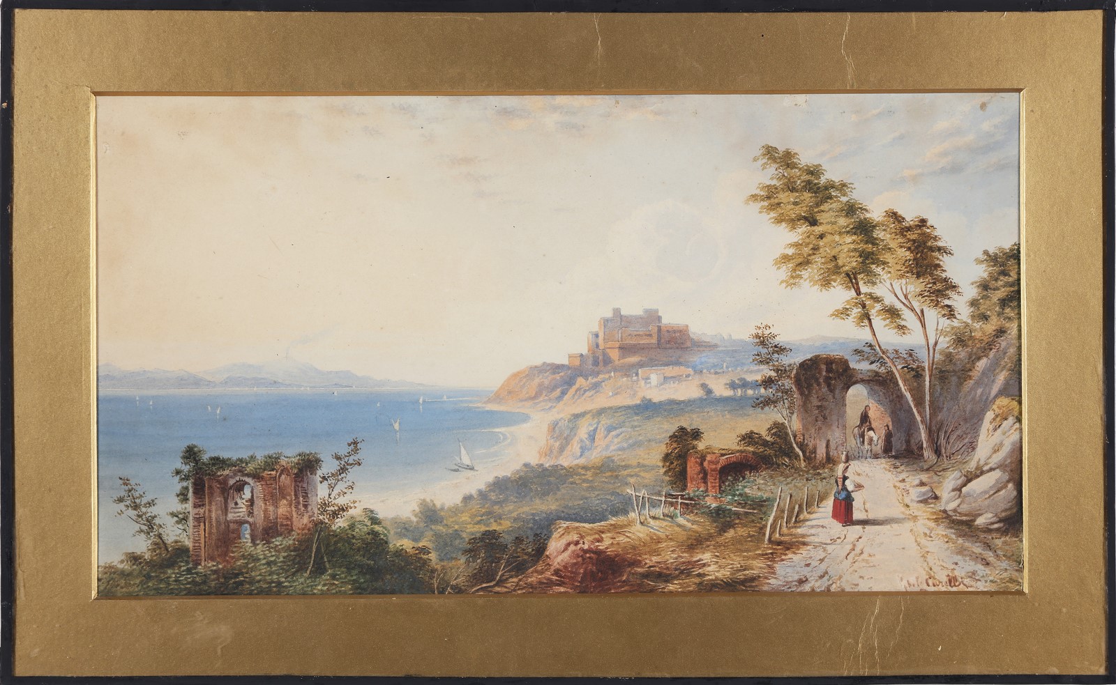 CARELLI GABRIELE (1820 - 1900) Baia di Baia. Acquarello su carta. Cm 53,00 x 31,00. Firma in basso a destra. Al retro titolo. Cornice presente