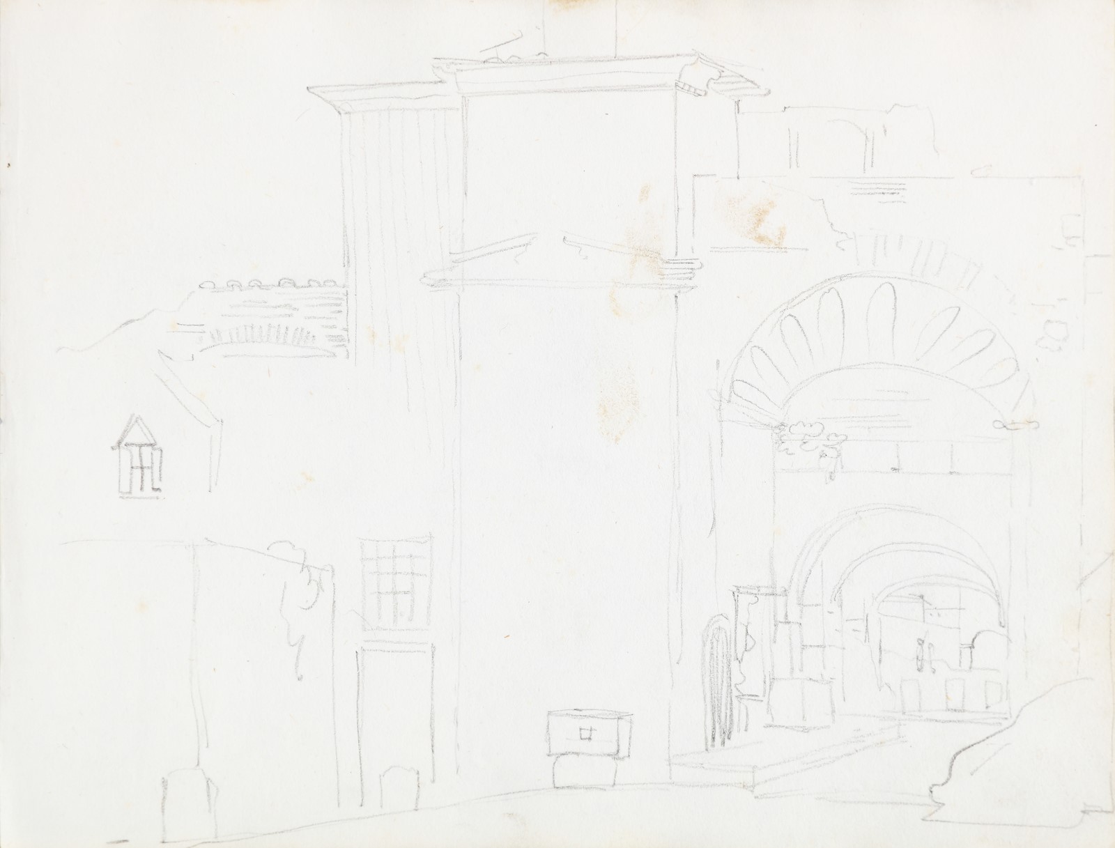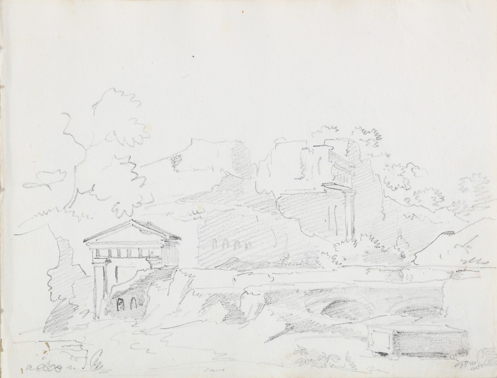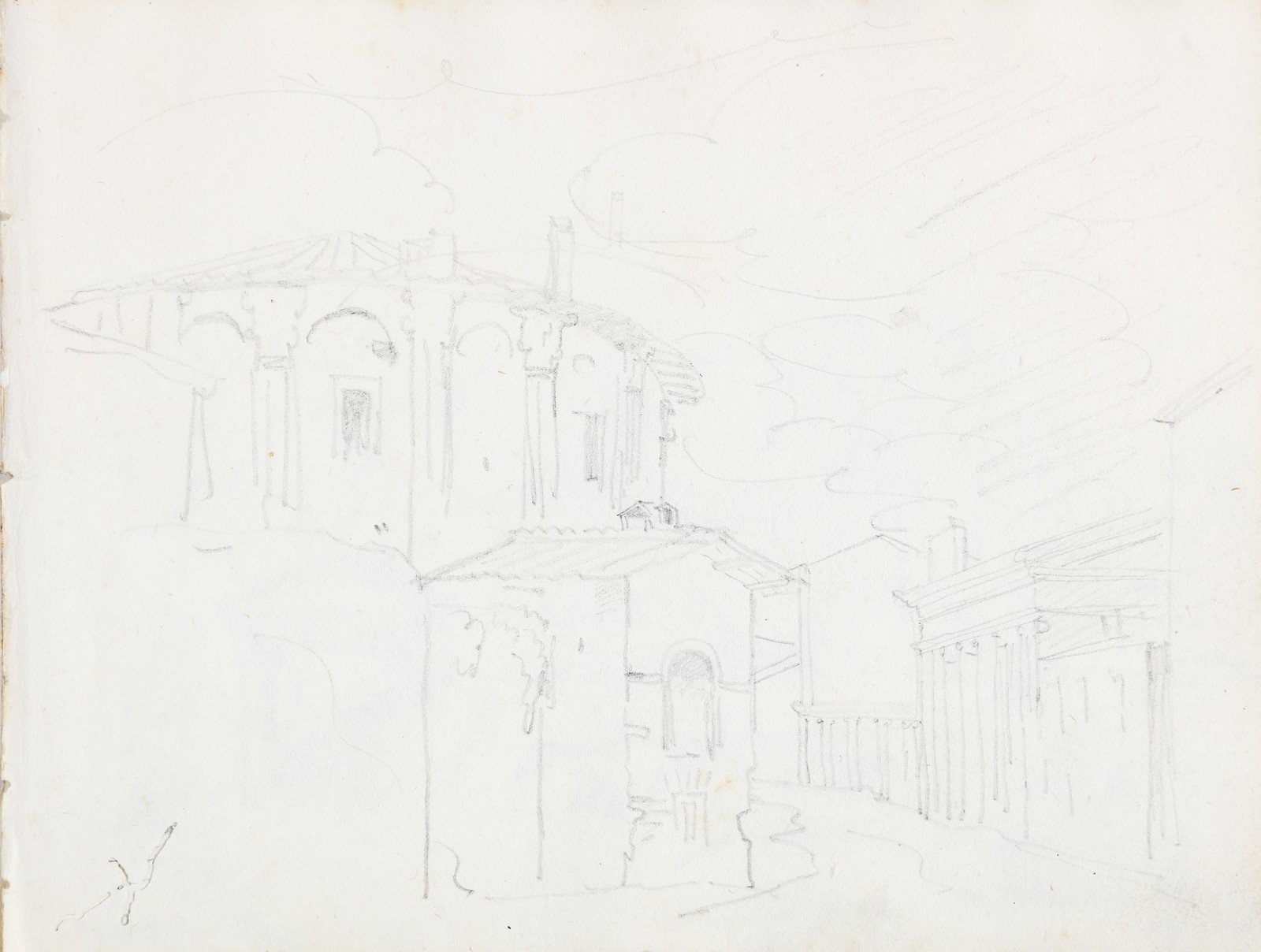 BASILETTI LUIGI (1780 - 1860) Ricordi di viaggio. 18 disegni. 1805. Disegno a matita su carta. Cm 23,00 x 18,00. Taccuino contenente 18 disegni. Il primo foglio del taccuino riporta la scritta "7 genajo 1805" e permette di riferire i presenti disegni al primo soggiorno romano dal 1803 al 1809. il quaderno non è completo: sono 18 fogli di un insieme maggiore andato disperso o ancora in possesso della famiglia di provenienza. Provenienza Direttamente dagli eredi. Bibliografia di riferimento Maurizio Mondini (a cura di) Luigi Basiletti a Roma e a Napoli, "Ricordi di viaggio" di un pittore neoclassico, AAB edizioni, 1999, catalogo della mostra tenuta a Brescia ( presso la sede Associazione Artisti bresciani) dal 20 marzo al 14 aprile 1999.