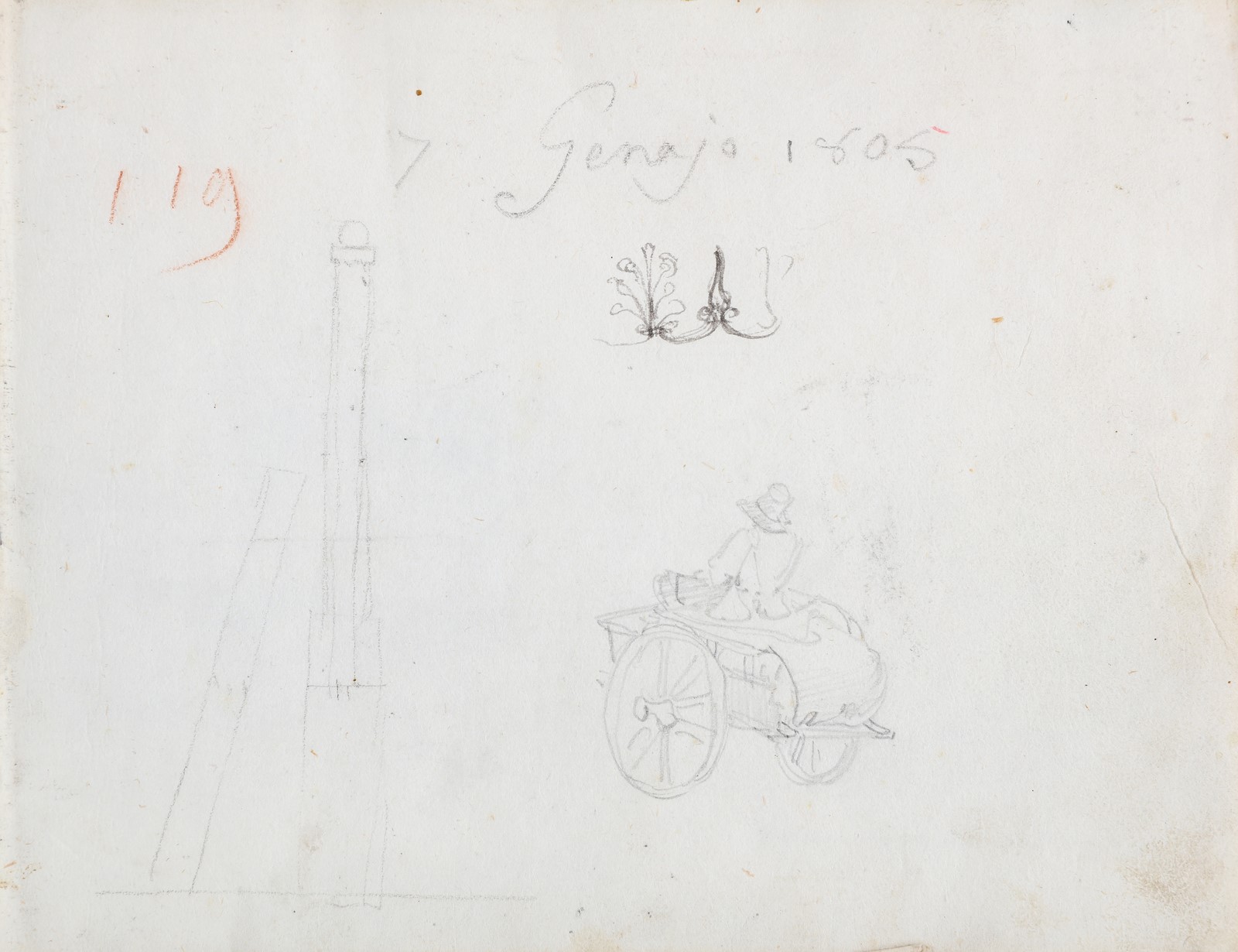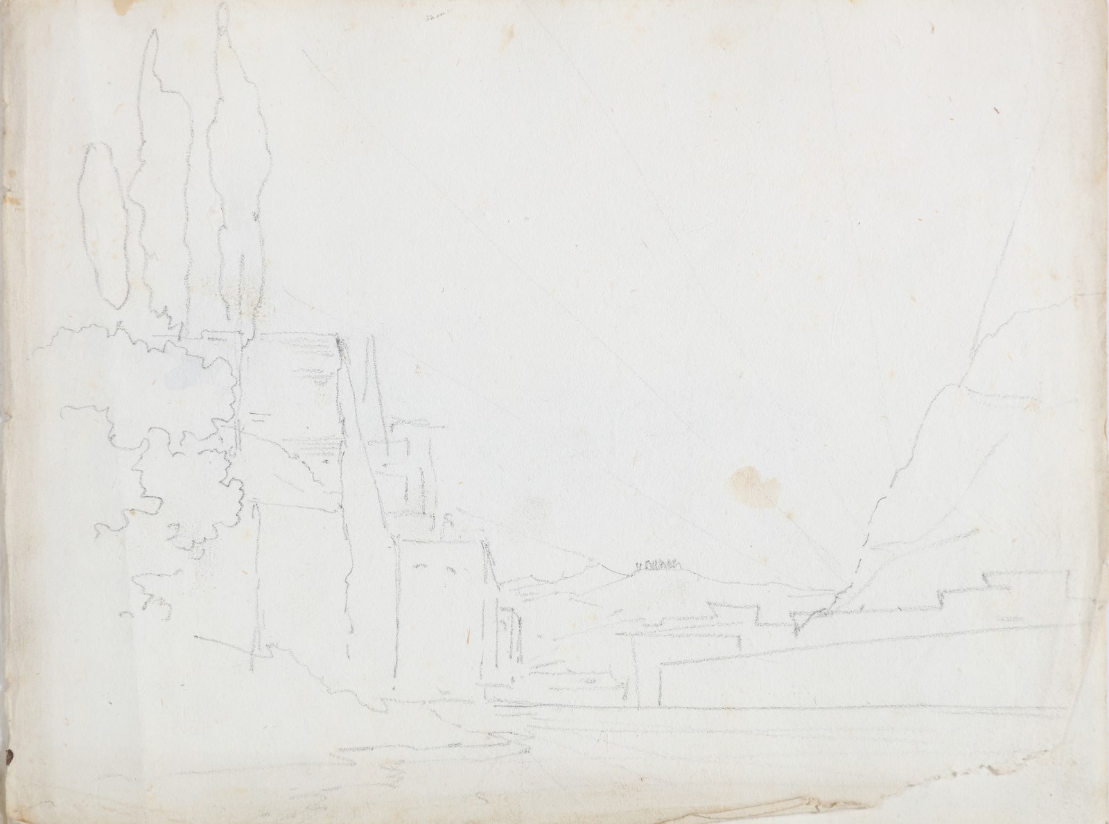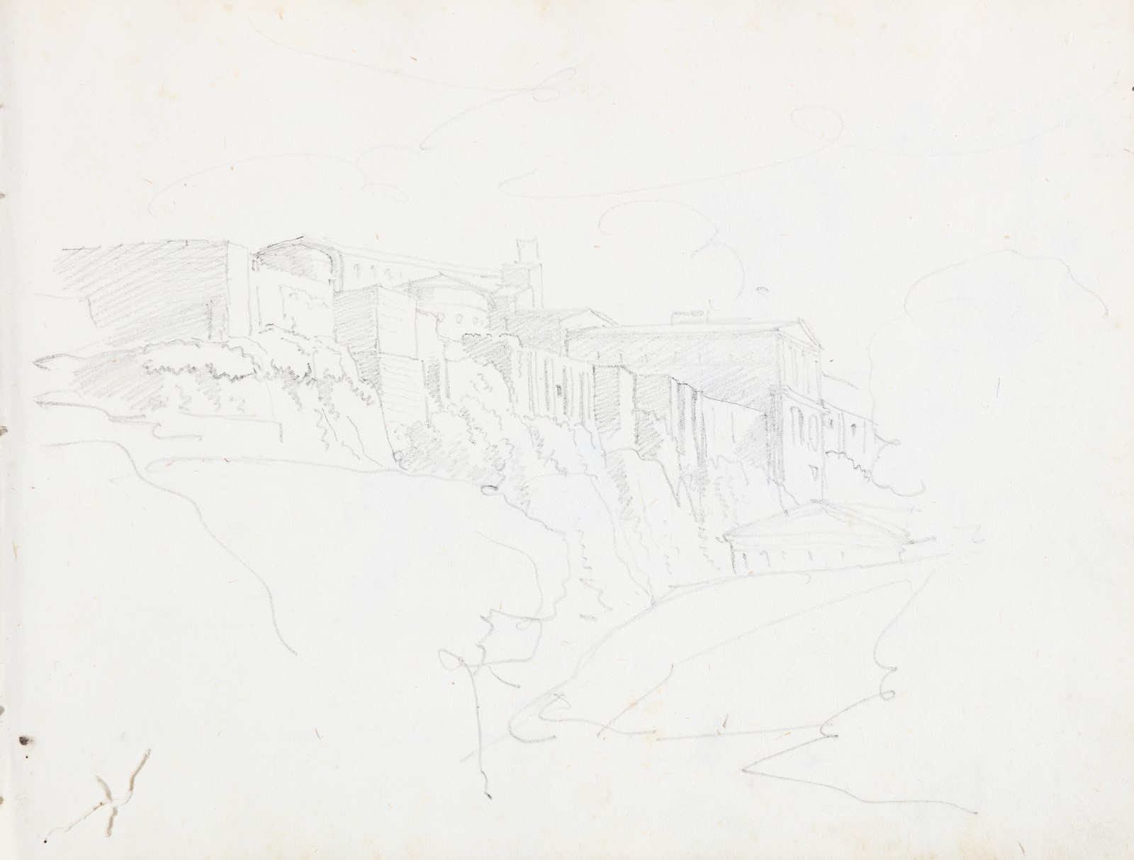 BASILETTI LUIGI (1780 - 1860) Ricordi di viaggio. 18 disegni. 1805. Disegno a matita su carta. Cm 23,00 x 18,00. Taccuino contenente 18 disegni. Il primo foglio del taccuino riporta la scritta "7 genajo 1805" e permette di riferire i presenti disegni al primo soggiorno romano dal 1803 al 1809. il quaderno non è completo: sono 18 fogli di un insieme maggiore andato disperso o ancora in possesso della famiglia di provenienza. Provenienza Direttamente dagli eredi. Bibliografia di riferimento Maurizio Mondini (a cura di) Luigi Basiletti a Roma e a Napoli, "Ricordi di viaggio" di un pittore neoclassico, AAB edizioni, 1999, catalogo della mostra tenuta a Brescia ( presso la sede Associazione Artisti bresciani) dal 20 marzo al 14 aprile 1999.