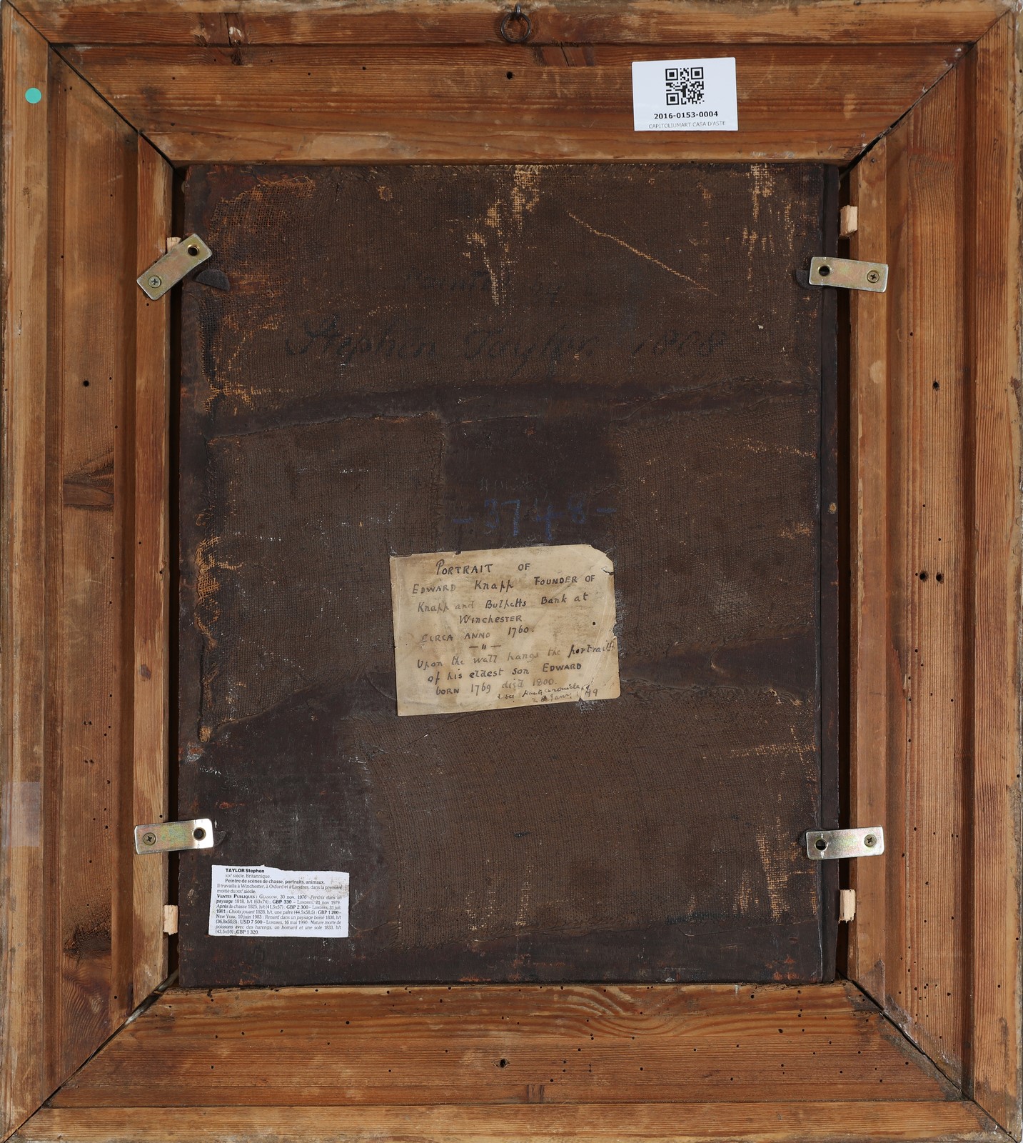 TAYLOR STEPHEN (0 - 1849) Ritratto di Edward Knapp. . 1808. Olio su tela incollata su tavola. Cm 32,00 x 40,00. Firma in basso a destra. Al retro titolo, firma e anno. Cartiglio descrittivo e biografico.
