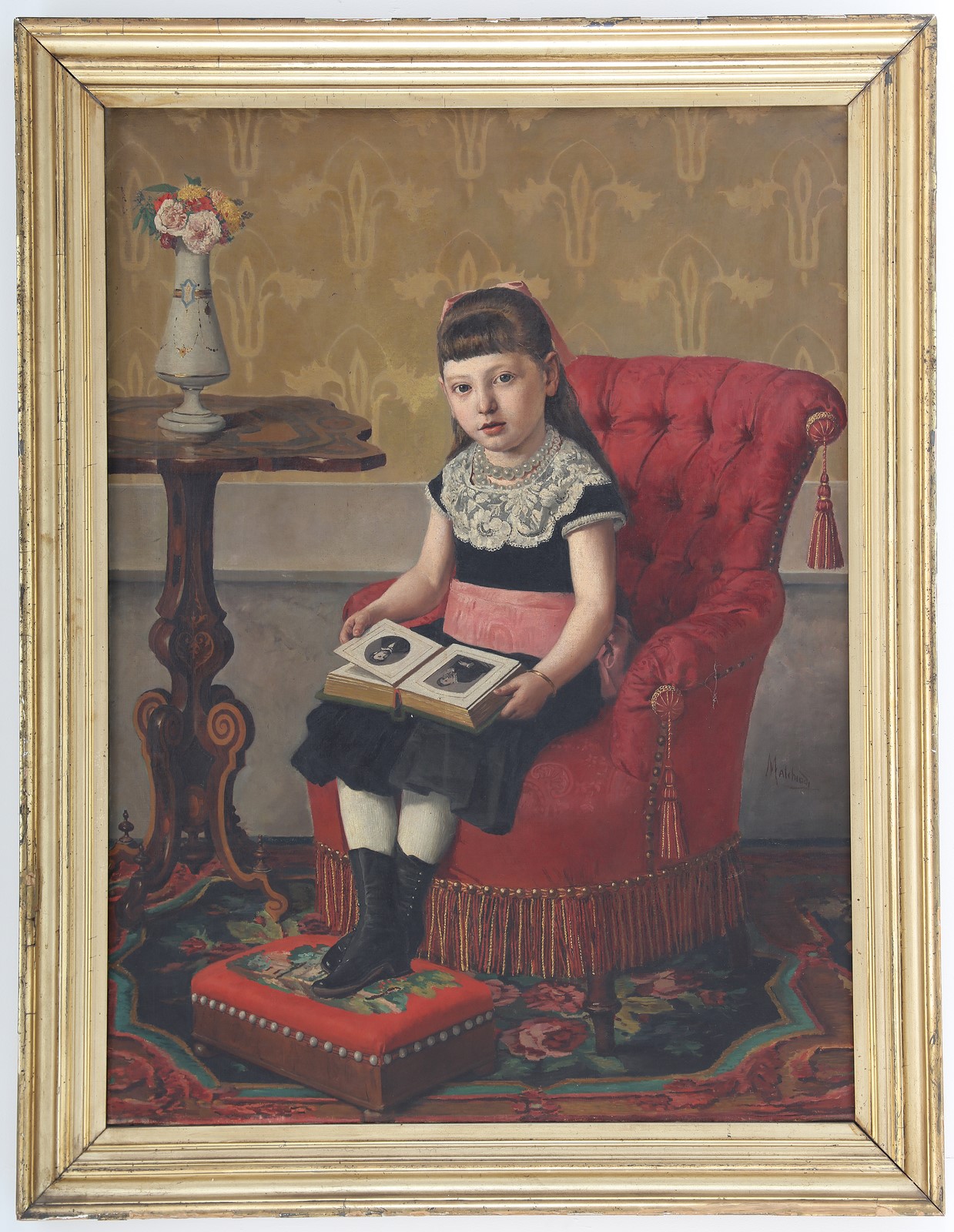 MALCHIODI ANTONIO (1848 - 1915) Contessina Ines Belli de Belli di Castelvetro. Olio su tela. Cm 87,00 x 118,00. Firma in basso a destra. Cornice presente