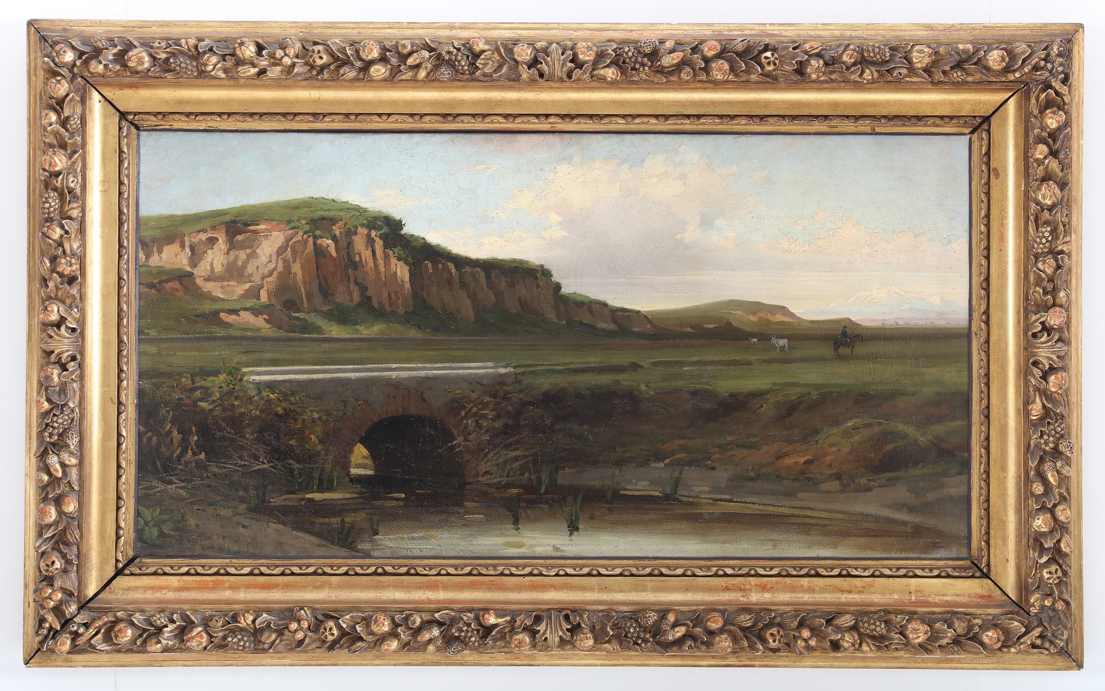 VERTUNNI ACHILLE (1826 - 1897) Veduta di della campagna romana. Olio su tela. Cm 150,00 x 76,00. Firma in basso a sinistra. Cornice presente