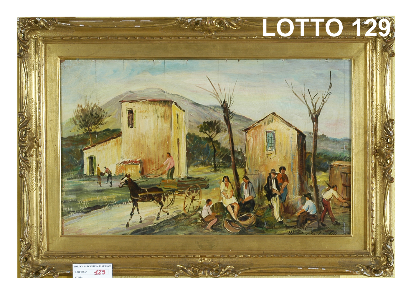 MARIO CORTIELLO (1907 - 1982) DIPINTO OLIO SU TAVOLA RAFF. PAESAGGIO CON FIGURE MIS. 53 X 33