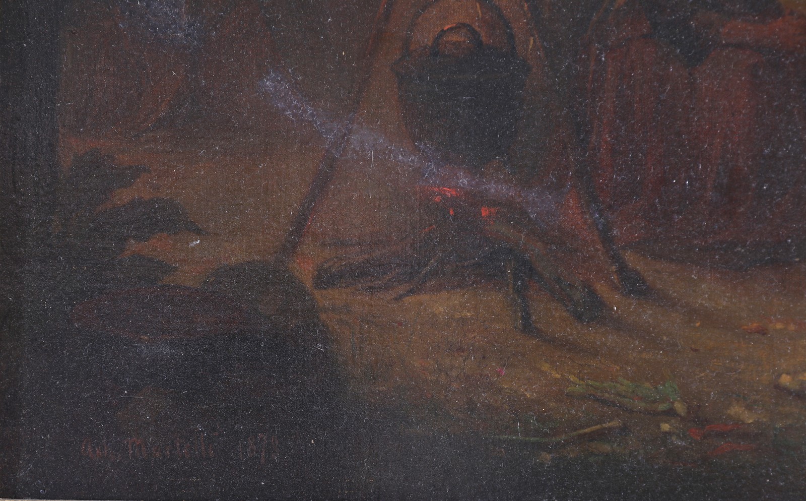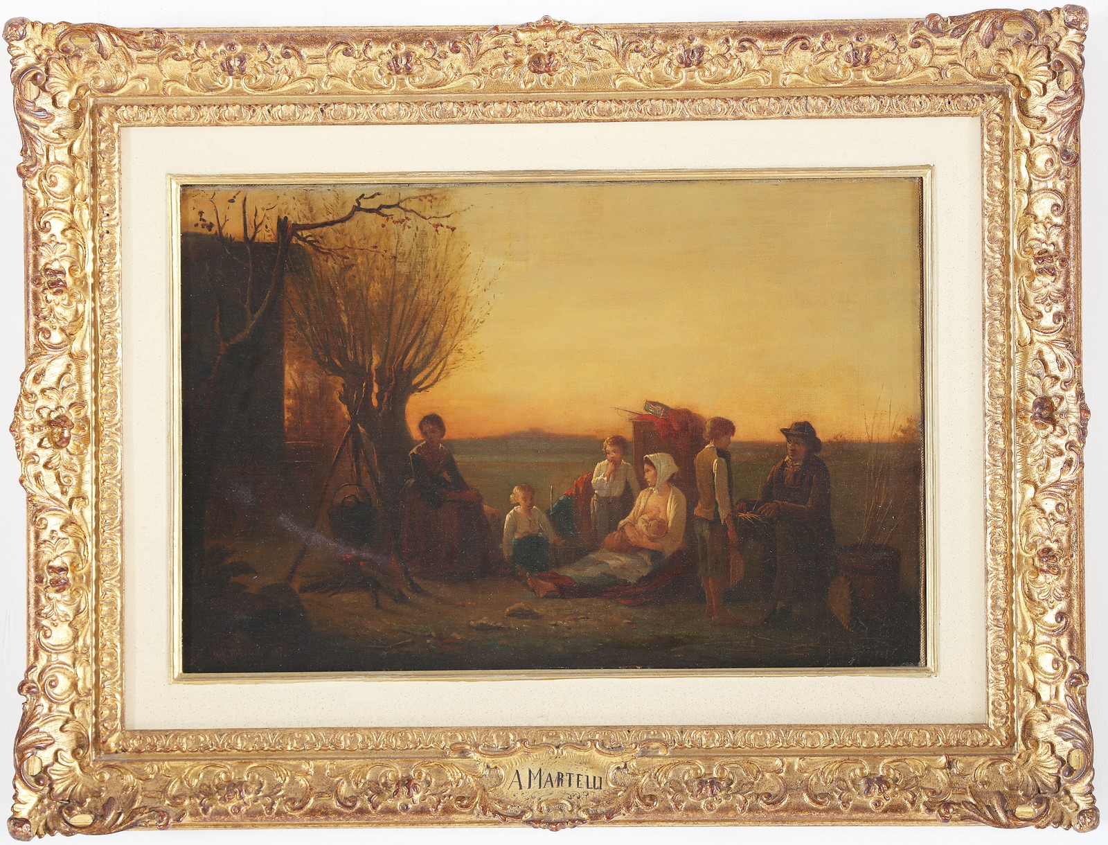 MARTELLI ACHILLE (1829 - 1903) La sosta. 1879. Olio su tela. Cm 57,00 x 37,00. Firma e anno in basso a sinistra.