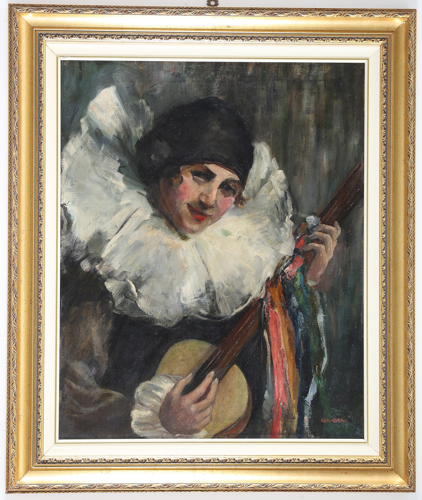 CHERUBINI CARLO (1897 - 1978) Figura carnevalesca. Olio su tela. Cm 58,50 x 74,00. Firmato in basso a destra.