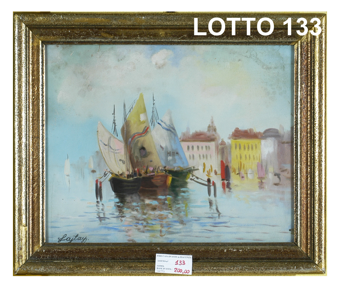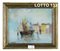 LAITAY DIPINTO TEMPERA SU CARTONE RAFF. MARINA CON BARCHE MIS. 50 X 40