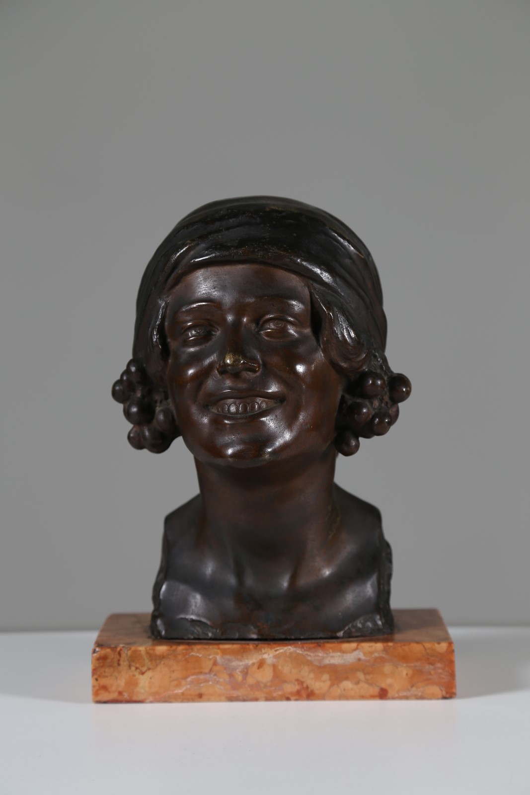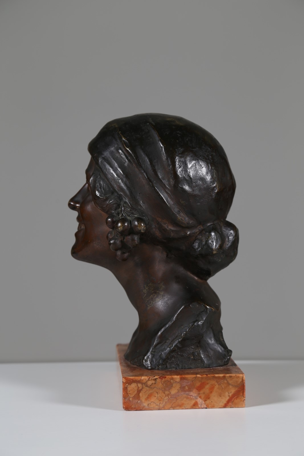 MANIFATTURA ITALIANA DELLA FINE DEL XIX SECOLO Volto femminile. Bronzo. Cm 20,00 x 28,00 x 18,00. Firmato alla base.