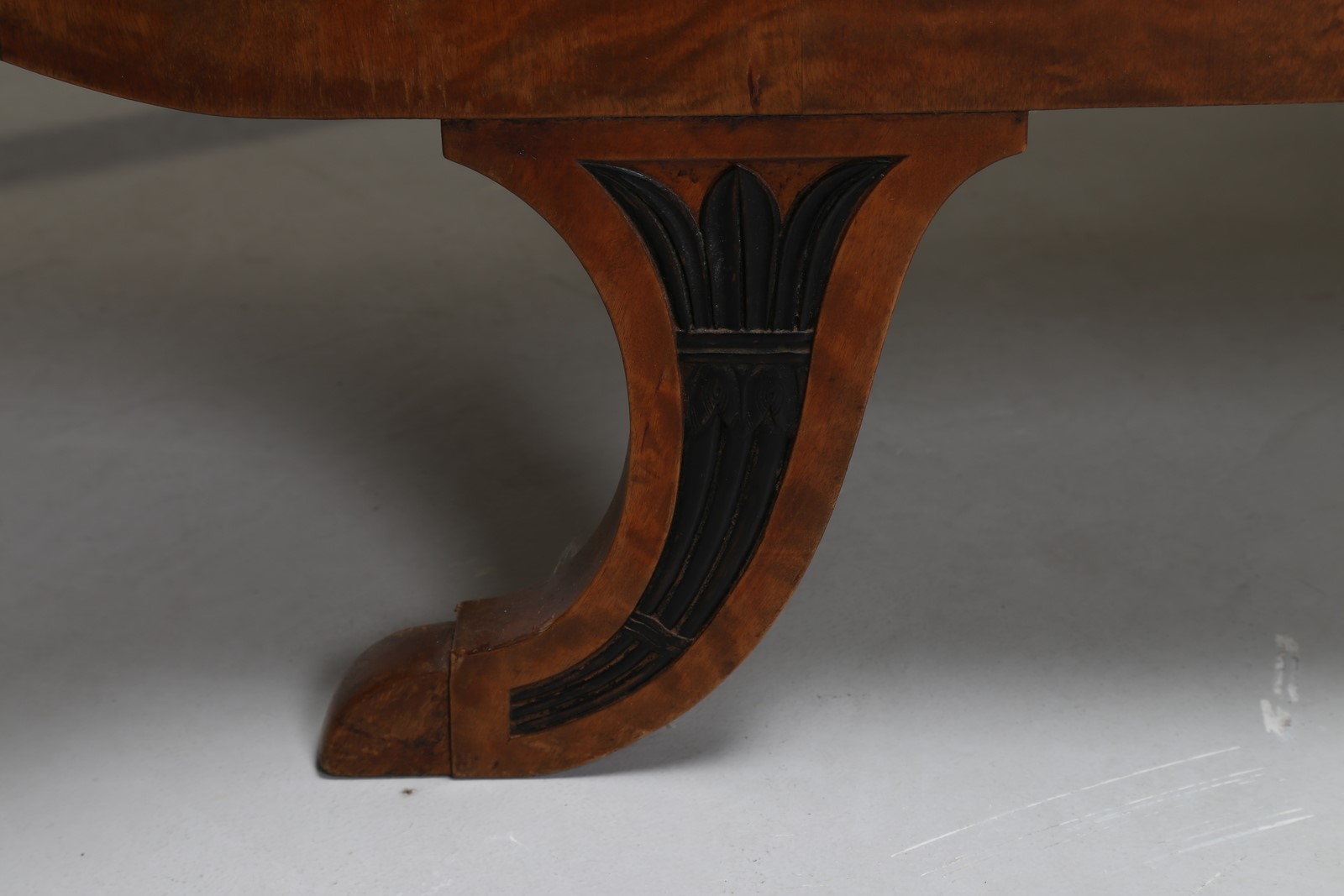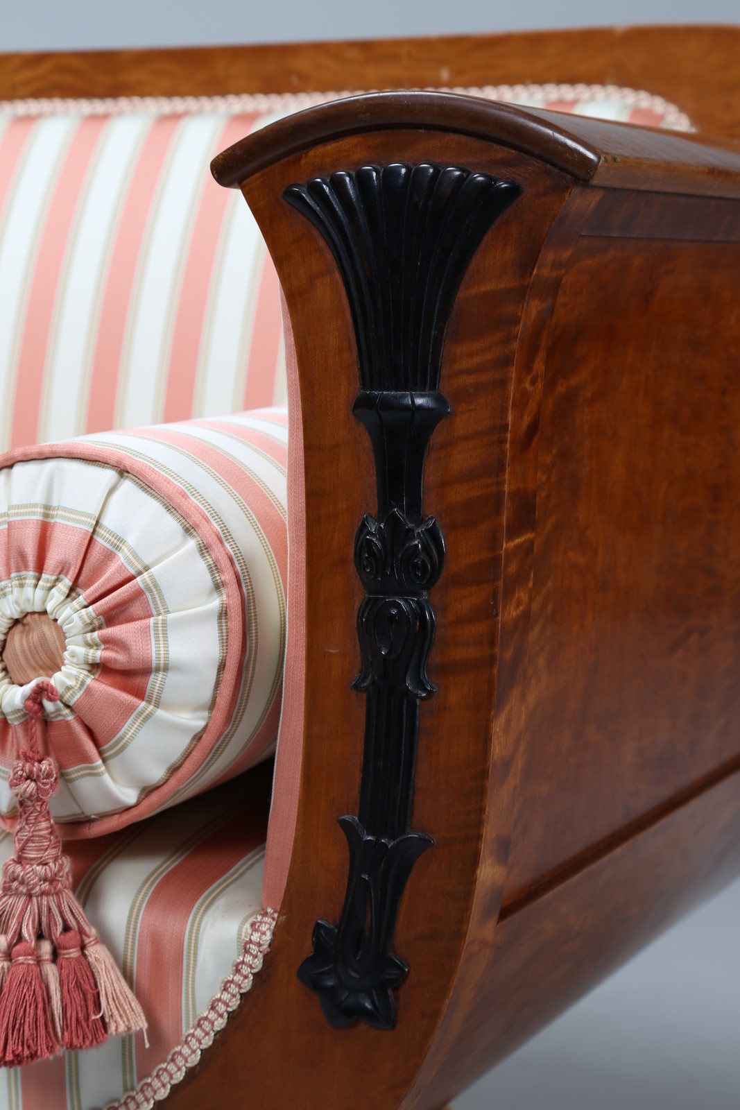 MANIFATTURA TEDESCA DEL XIX SECOLO Divano biedermeier con inserti in legno ebanizzato. . Cm 212,00 x 84,00 x 71,00.