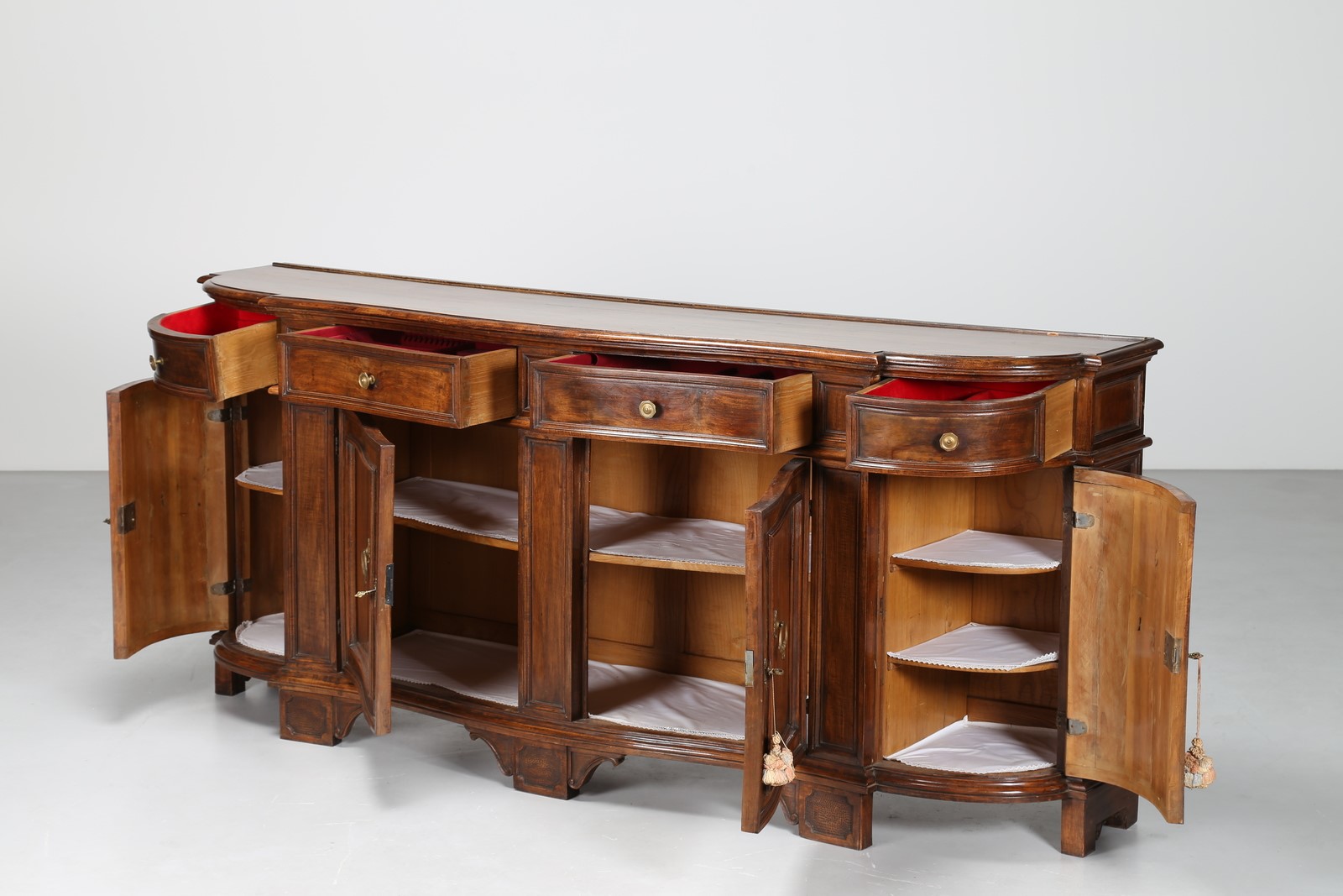 MANIFATTURA ITALIANA DEL XX SECOLO Credenza con quattro cassetti e quattro ante. . Cm 229,00 x 100,00 x 54,00.