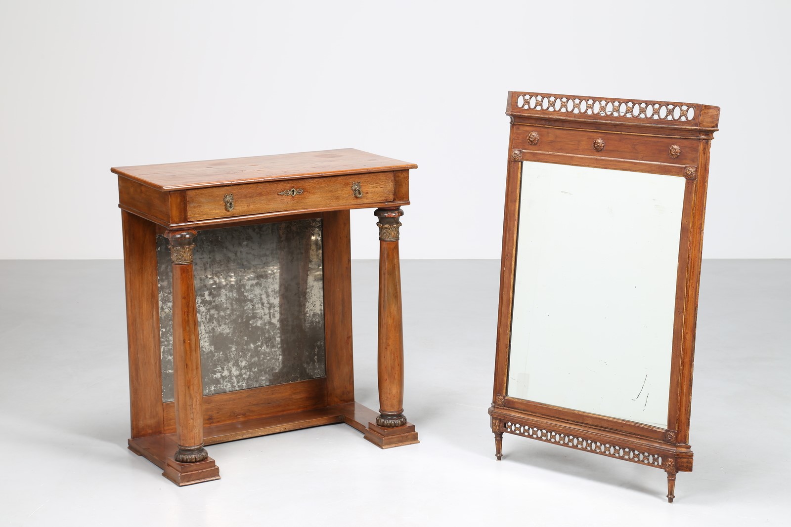 MANIFATTURA ITALIANA DEL XIX SECOLO Consolle in legno di noce, specchio di...
