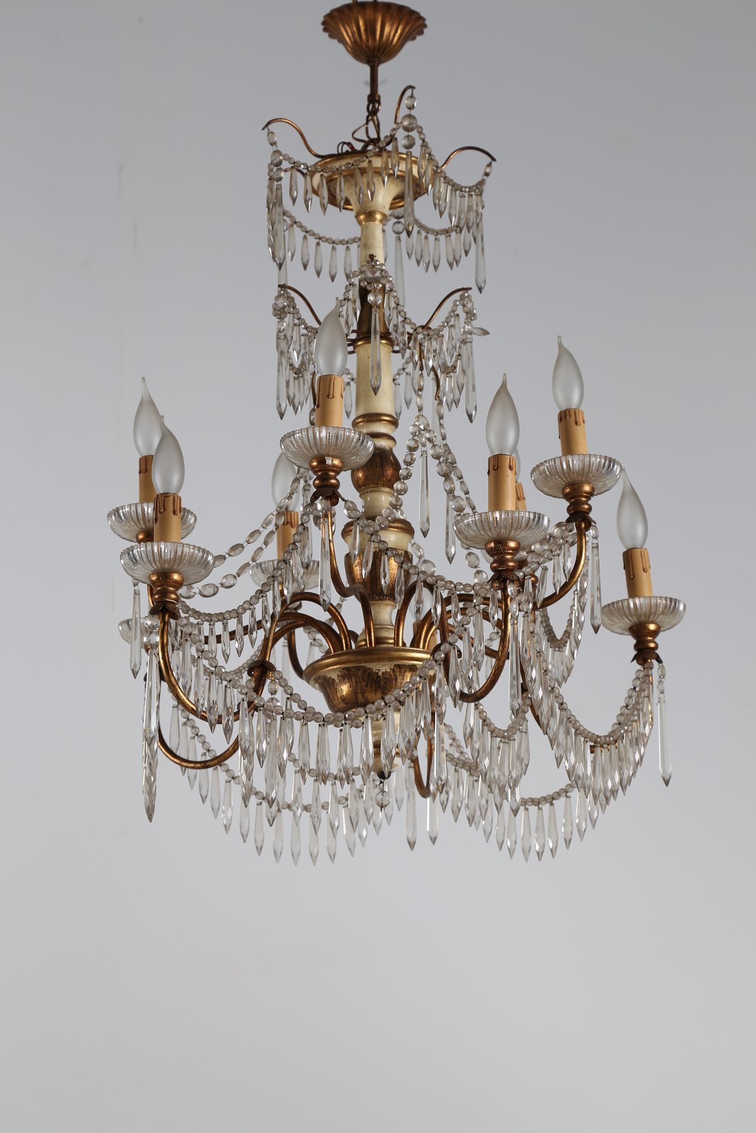 MANIFATTURA ITALIANA XX SECOLO Lampadario in legno laccato e cristallo. . Cm...