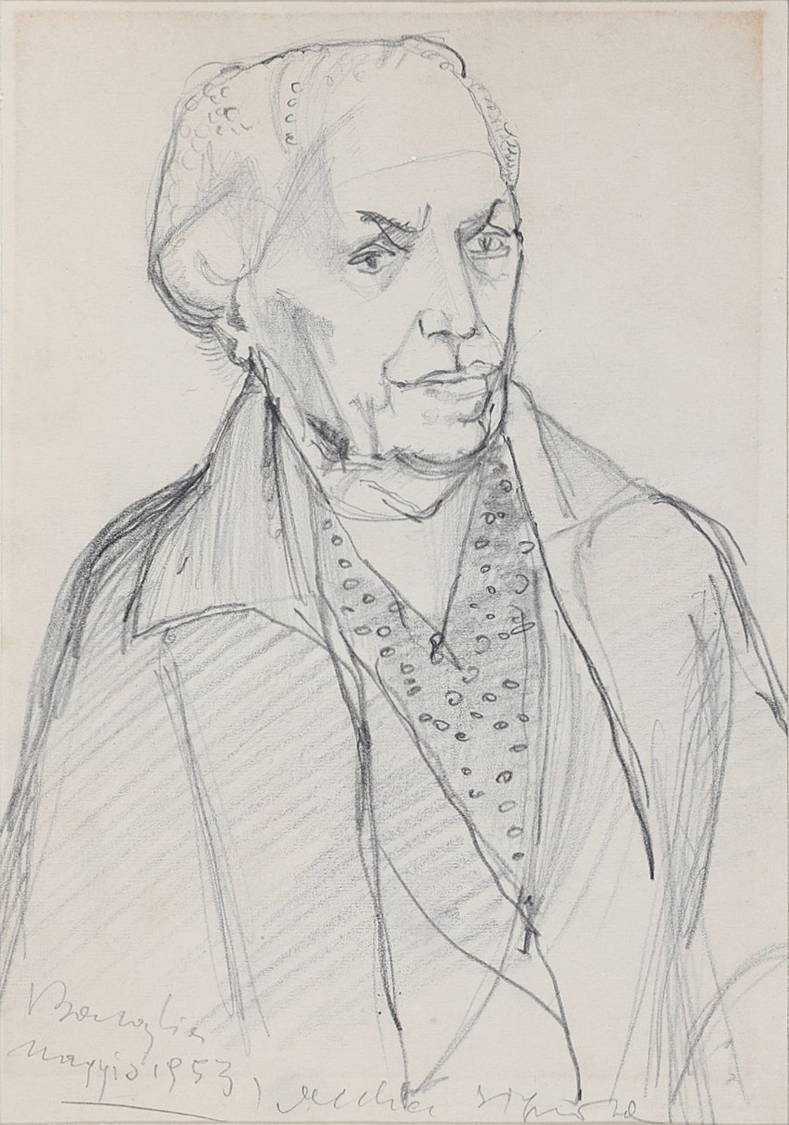 Lot 286 | BASAGLIA VITTORIO (1936 - 2005) Vecchia signora. 1953. Matita su carta. Cm...