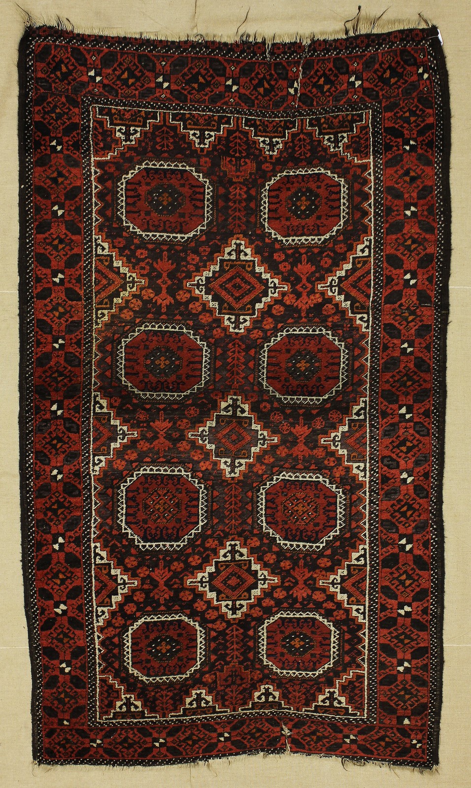 Lot 328 | BELUCISTAN Persia Orientale. 1900 circa. Fondo mattone, 4x2 guls (salor)....