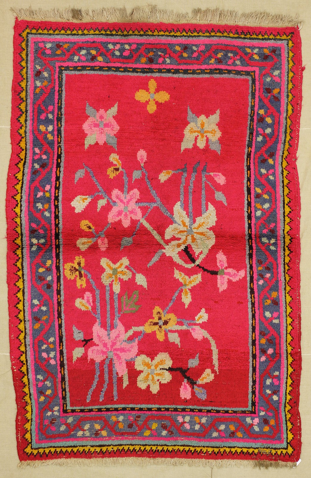 Lot 331 | KOTAN Turkestan Orientale. 1950 circa. Fondo rosso fucsia, corolle di fiori,...