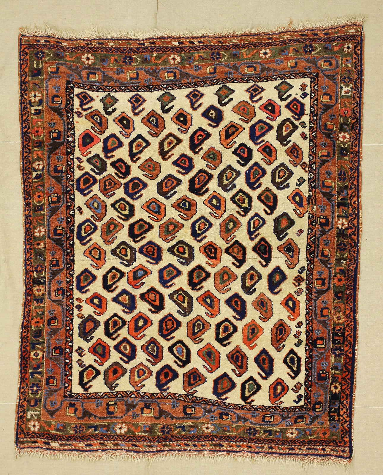AFSCHAR NERIZ Persia Meridionale. 1920 circa. Fondo chiaro, bothe colorati....