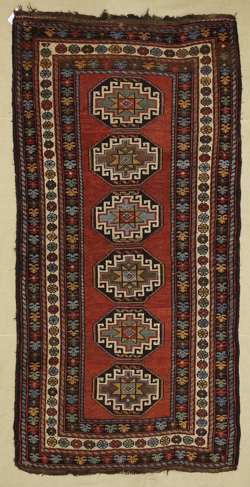 LORISTAN Persia Sud Occidentale. 1880 circa. Fondo mattone, 6 memling guls. Conservazione molto buona. Tappeto. Cm 100,00 x 203,00.