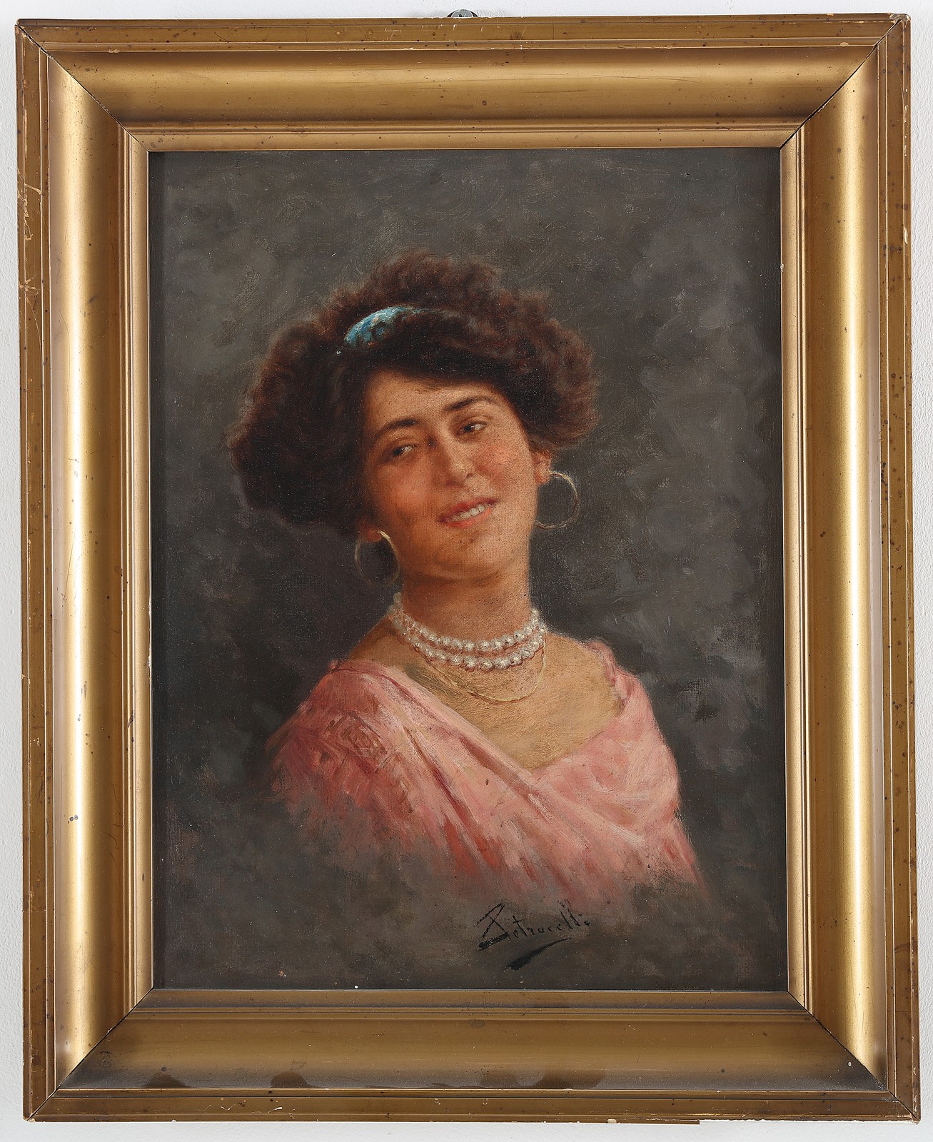 PETROCELLI ACHILLE (1861 - 1929) Ritratto femminile. olio su tela,. Cm 26,50 x 35,00. Firma in basso al centro. Cornice presente