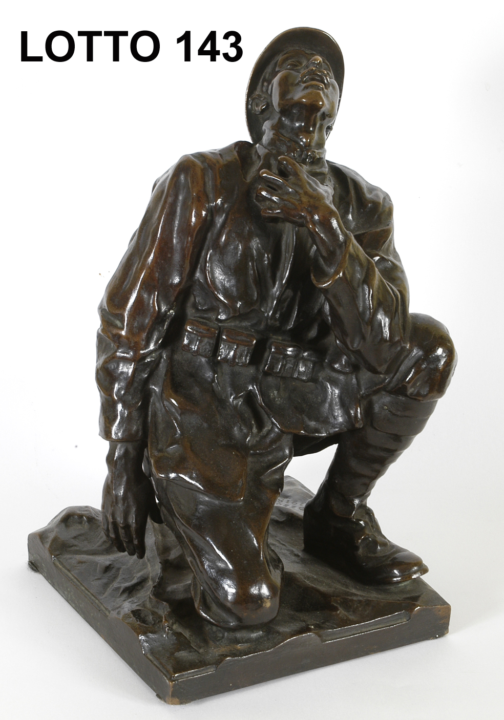 S. BOZZOLO SCULTURA IN BRONZO RAFF. MILITE IGNOTO DATATA 1918 H. 33