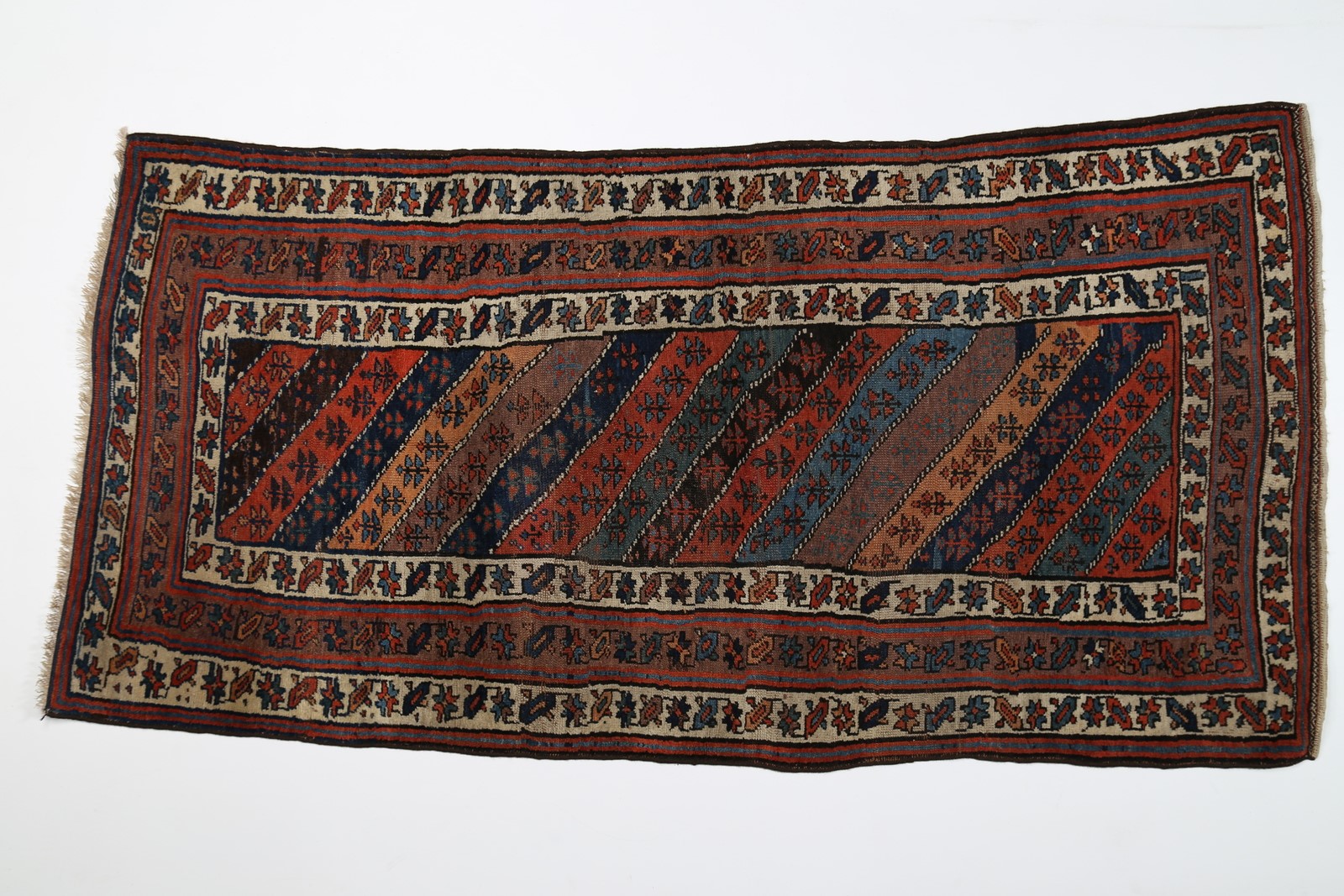 CURDISTAN Tappeto orientale. Persia. 1880. Lana e cotone. Cm 127,00 x 250,00. Riche policrome, bordo cammello. Buono stato di conservazione.