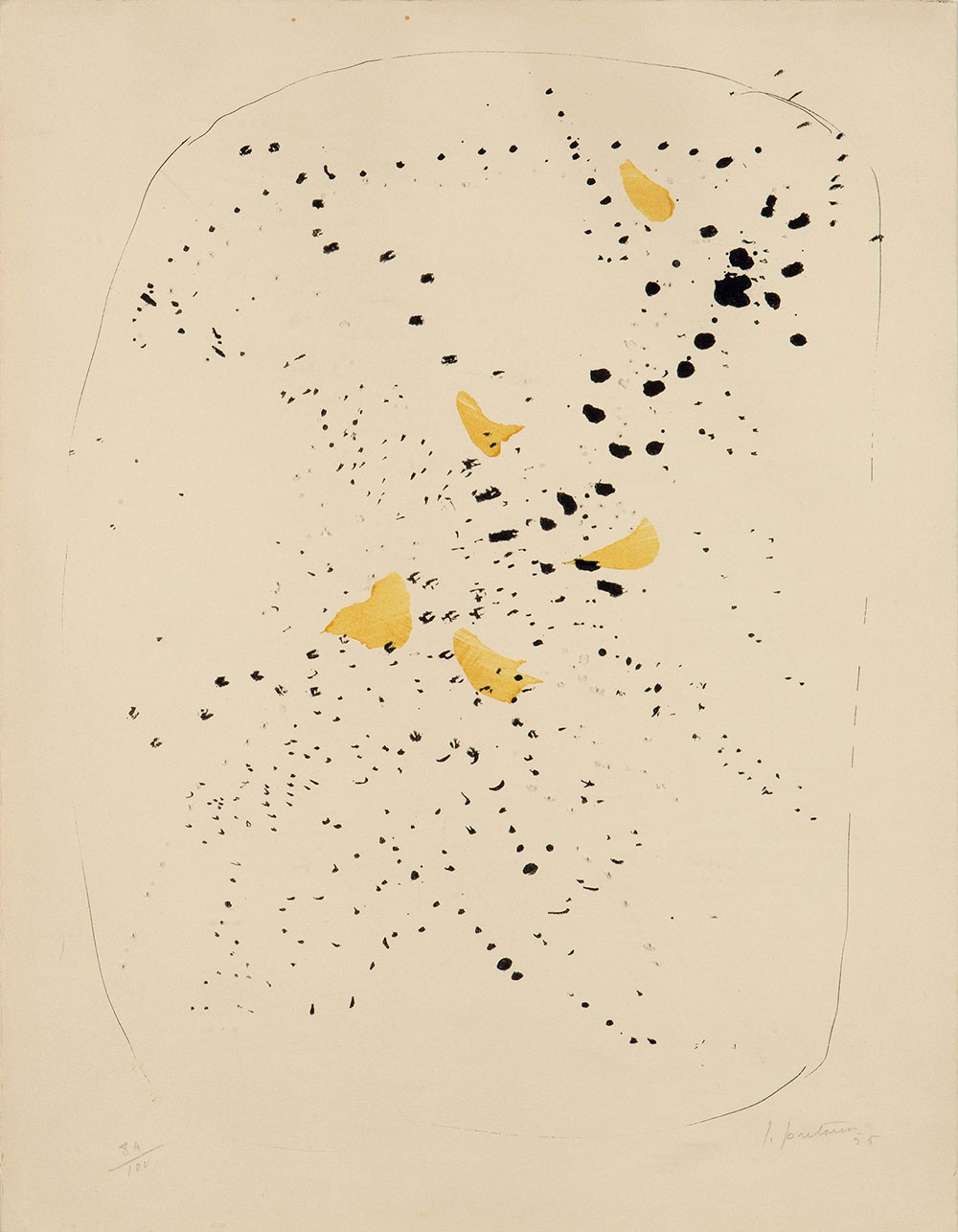 Lucio Fontana (1899-1968), Concetto spaziale, 1955, litografia originale con buchi impressi, cm.50x38,5 es.84/100 firmato e numerato Catalogo Ruhe e Rigo n.L-8,pg.91