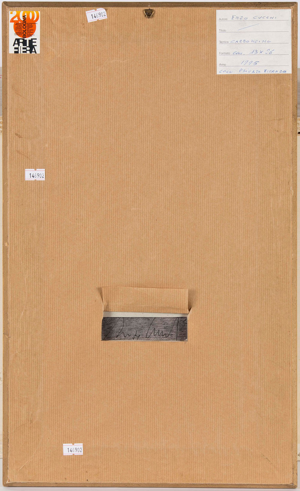 Enzo Cucchi (1949), Senza Titolo, 1995, Carboncino su carta, cm 26,15x14 Firmato al retro