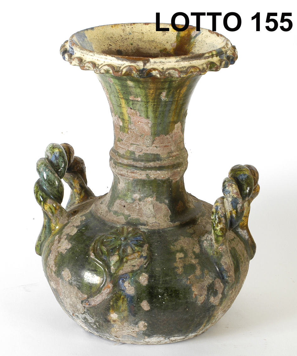 VASO IN TERRACOTTA MAIOLICATA ITALIA MERIDIONALE XIX° SEC. H. 30