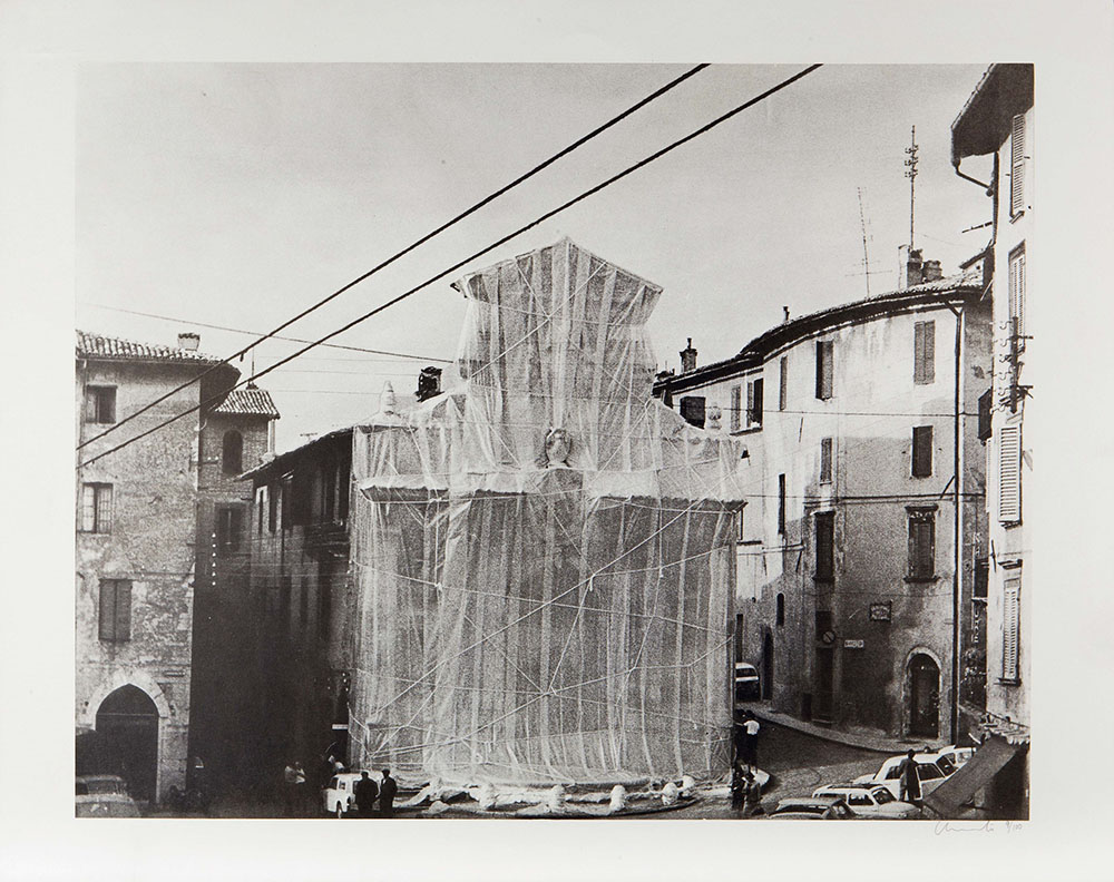 Christo (1935), Restauro di Santa Maria a Spoleto,1972, Litografia in bianco e nero, cm 65,5x82,5 Ed. 9/100 Il set completo è di 5 litografie firmate e numerate in 100 esemplari su carta Fabriano,Edizioni Multicenter, Milano Ed. 9/100