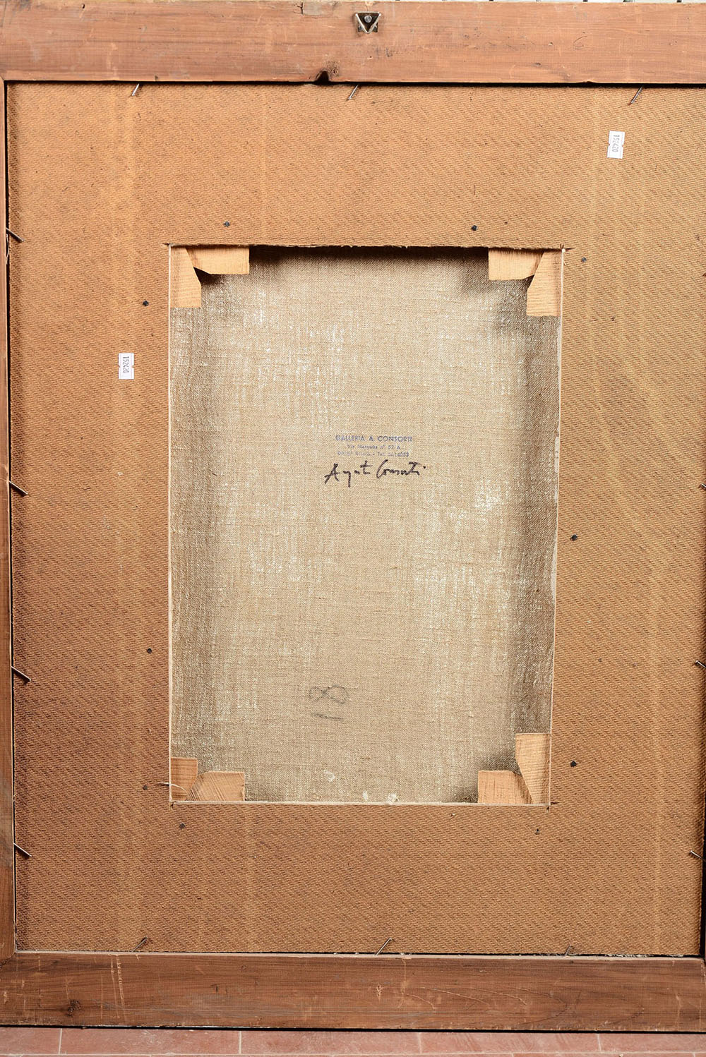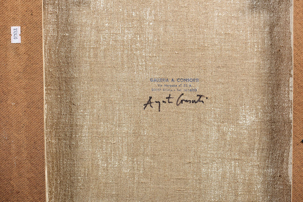 Franco Gentilini (1909-1981), Campanile nella stanza, 1975, fecnica mista su tela, cm 55x40 firmato e datato in alto a destra Autentica su fotografia di Luciana Gentilini in data 22/11/1993 Timbro e firma al retro della Galleria A. Consorti, Roma