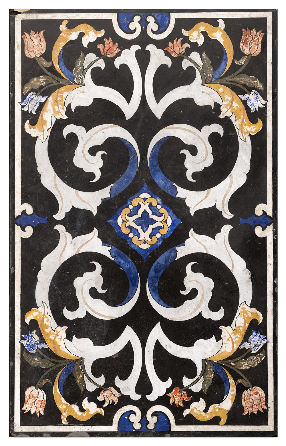 PIANO IN SCAGLIOLA , con decoro a ramage ad imitazione di marmi policromi, cm 80 x 50, Vecchia manifattura